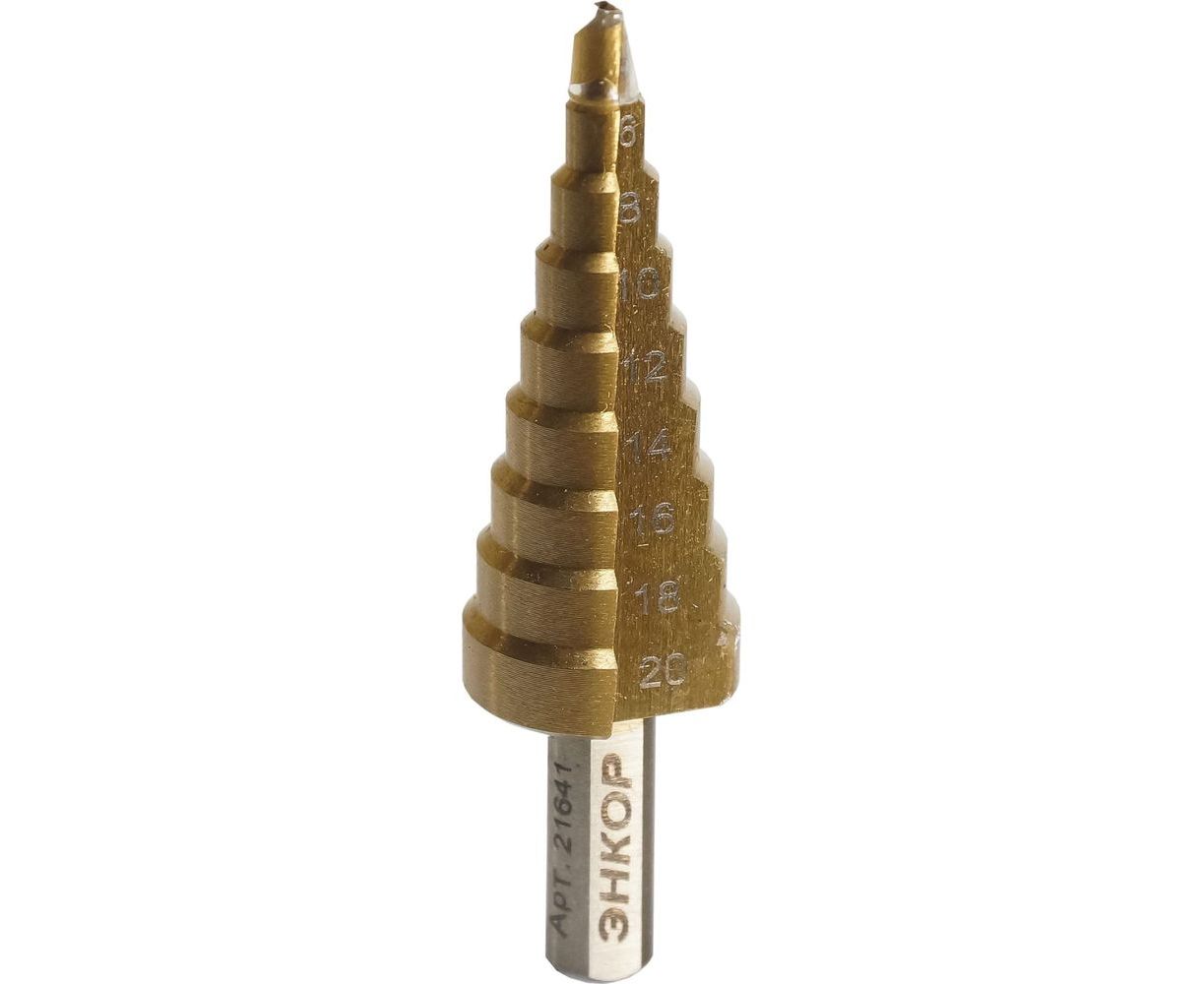 Сверло ступенчатое по металлу 4-20 мм, 9 ступеней, шаг 2 мм, высота ступени 5 мм Энкор 21641
