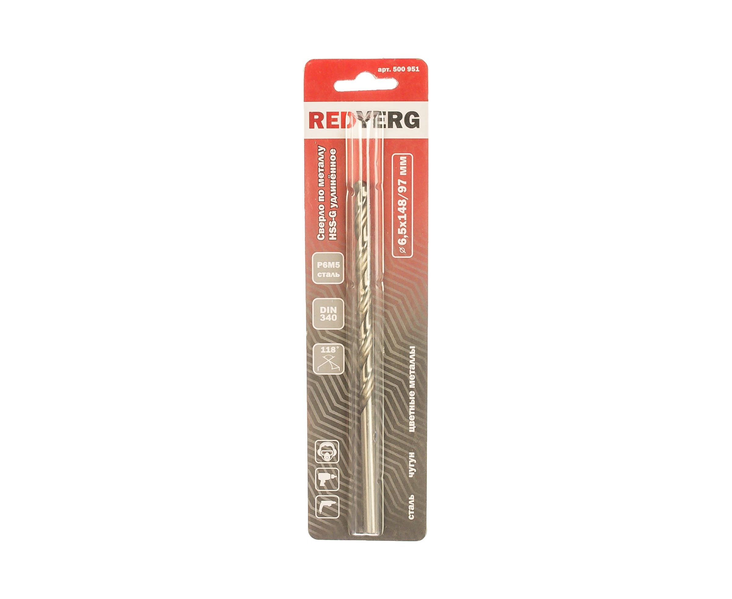 Сверло удлиненное по металлу HSS-G (6.5х97х148 мм) REDVERG 6621340