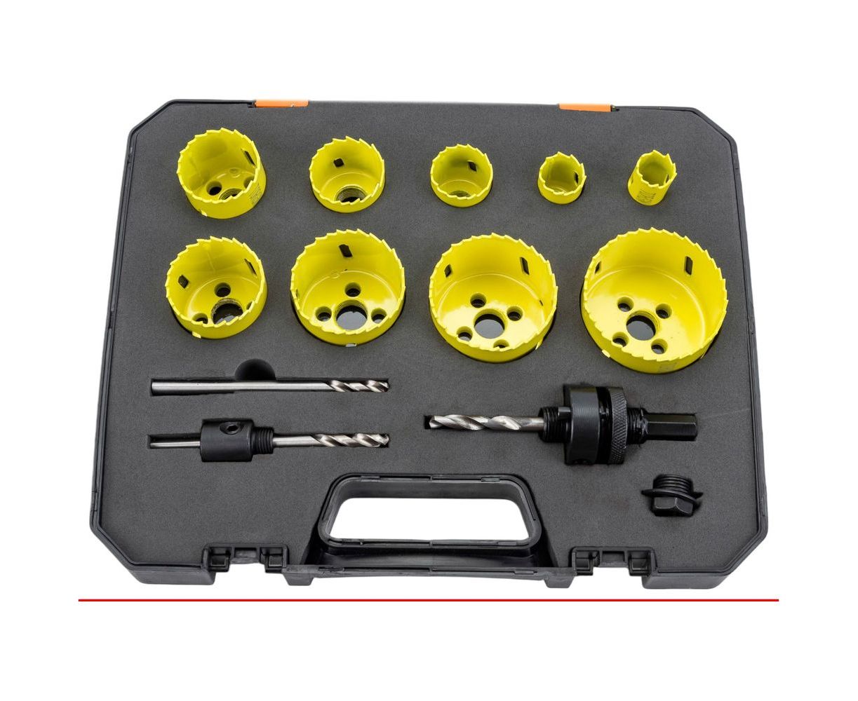 Набор биметаллических коронок по металлу 13 предметов (коронки диаметром 19, 22, 29, 35, 38, 44, 51, 57, 64 мм) TORGWIN T581806