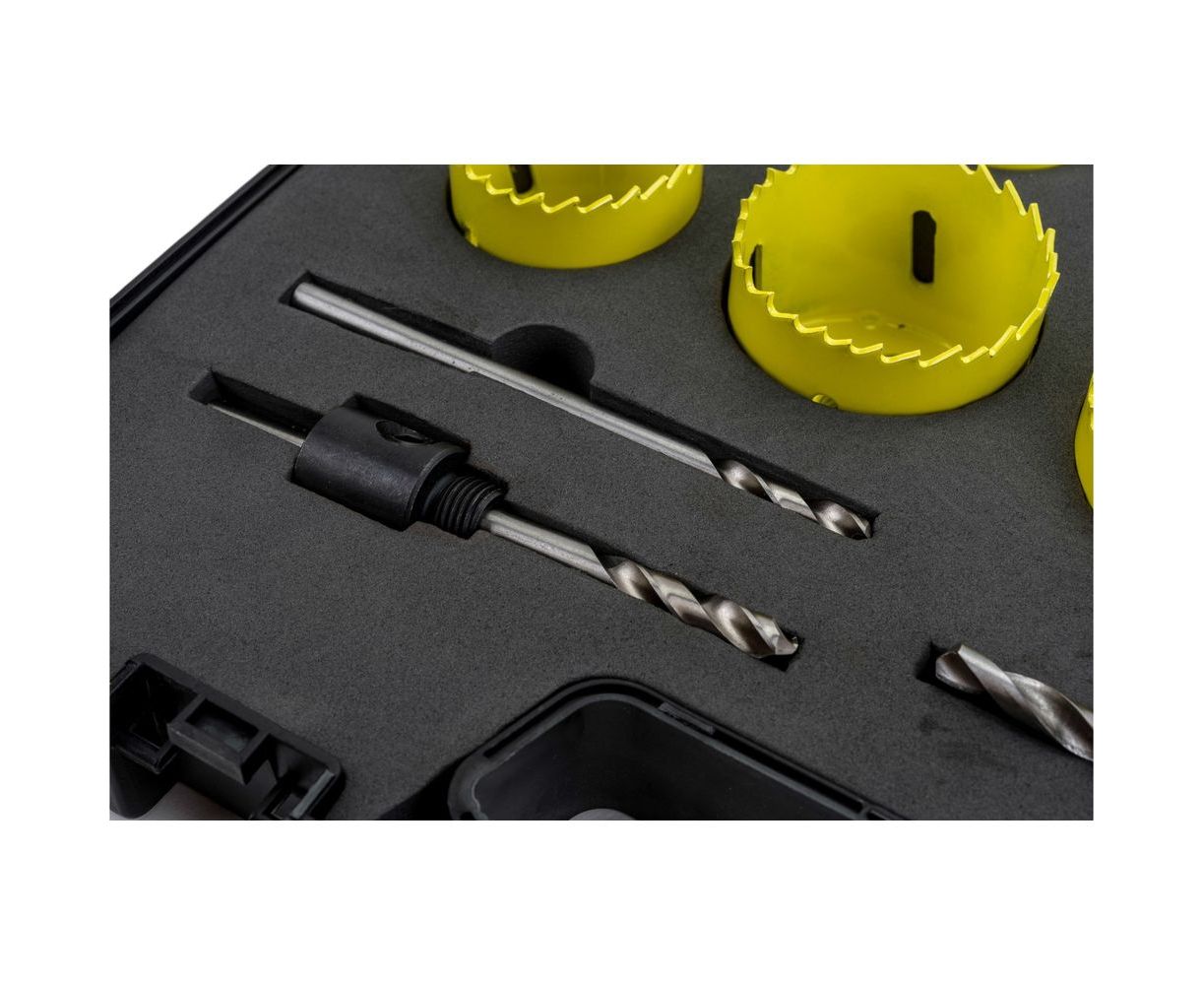 В наборе предусмотрены центрирующие сверла и адаптеры.