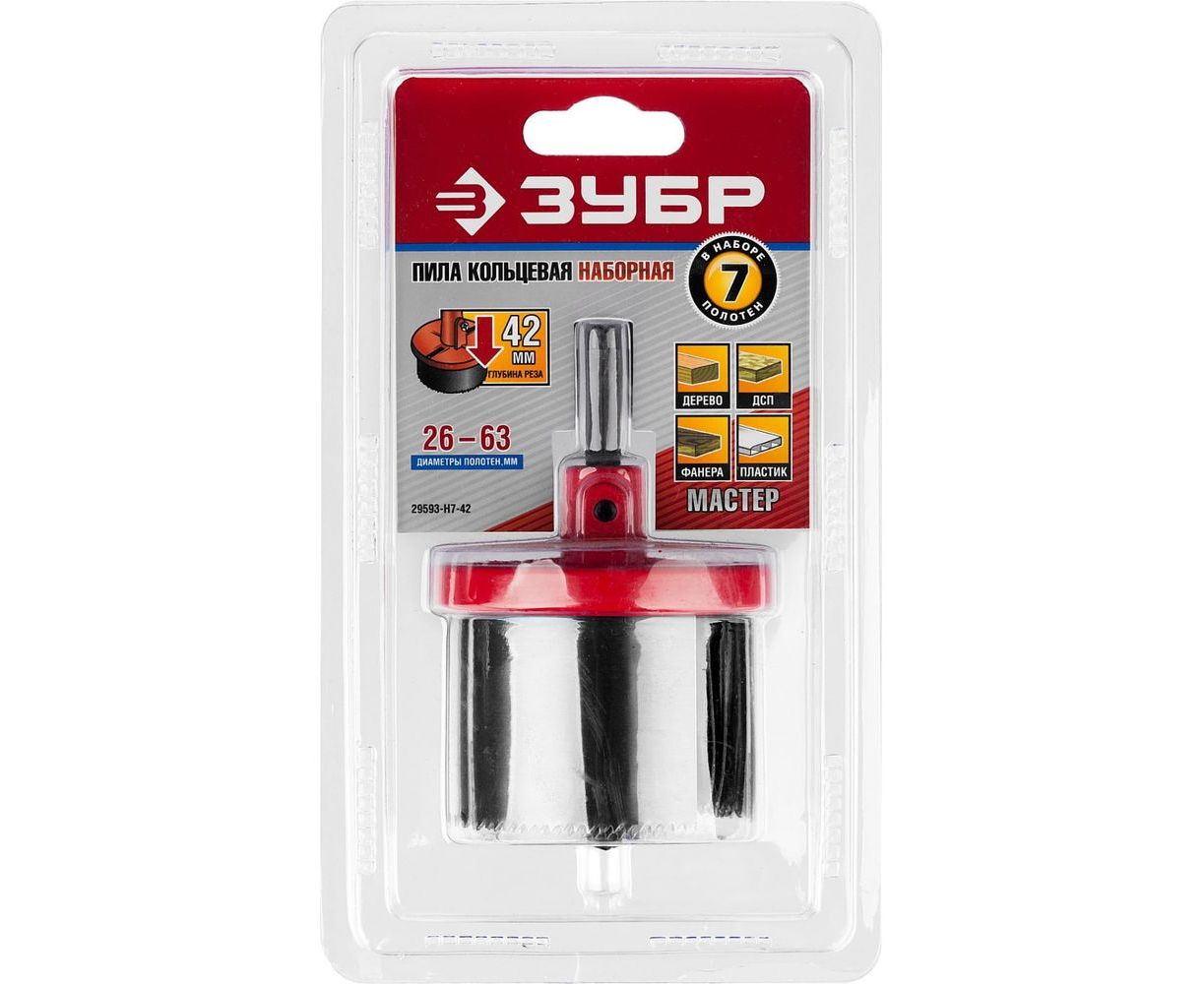 Пила кольцевая наборная Мастер (7 полотен; 26-63 мм; 42 мм) по дереву Зубр 29593-H7-42
