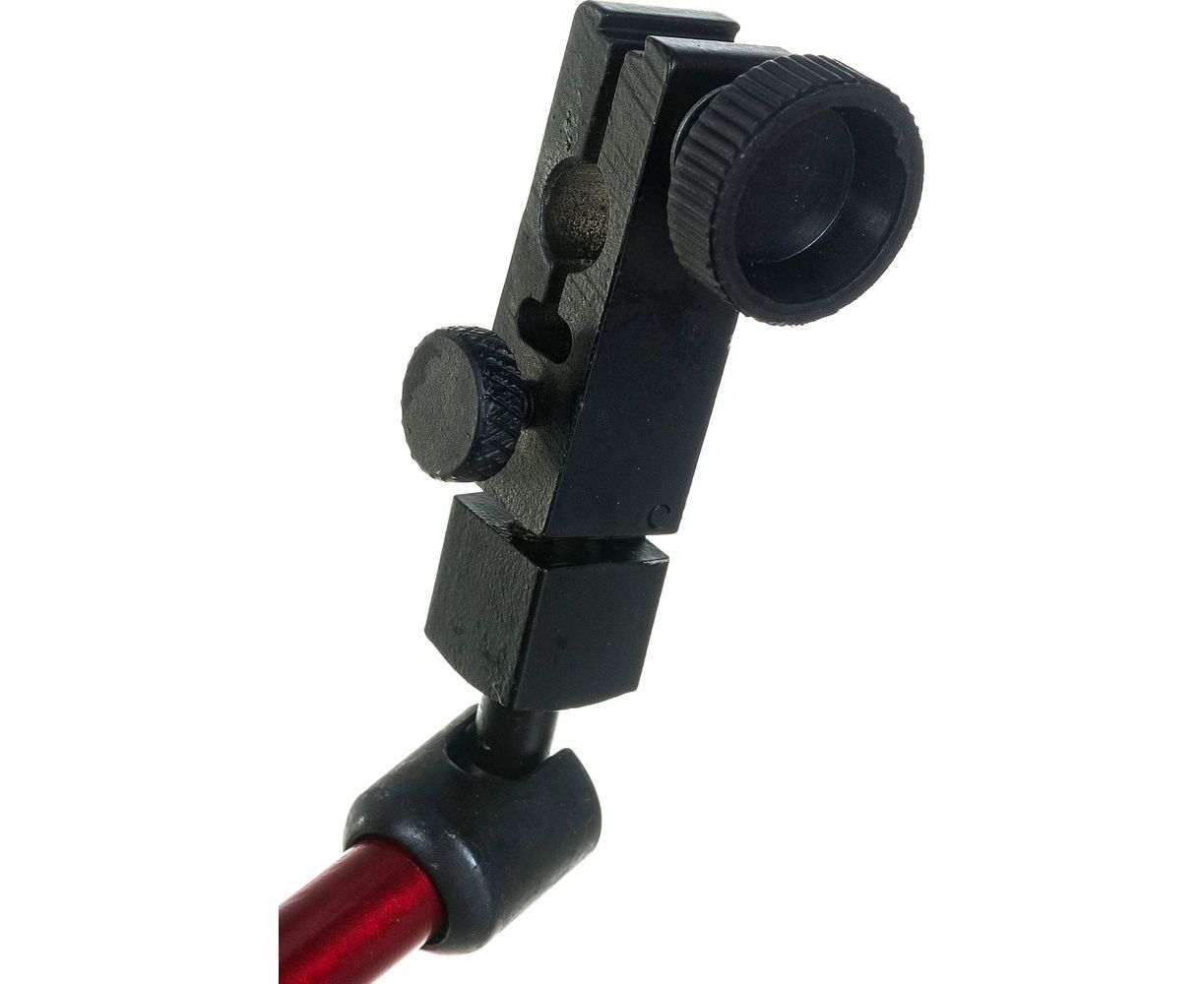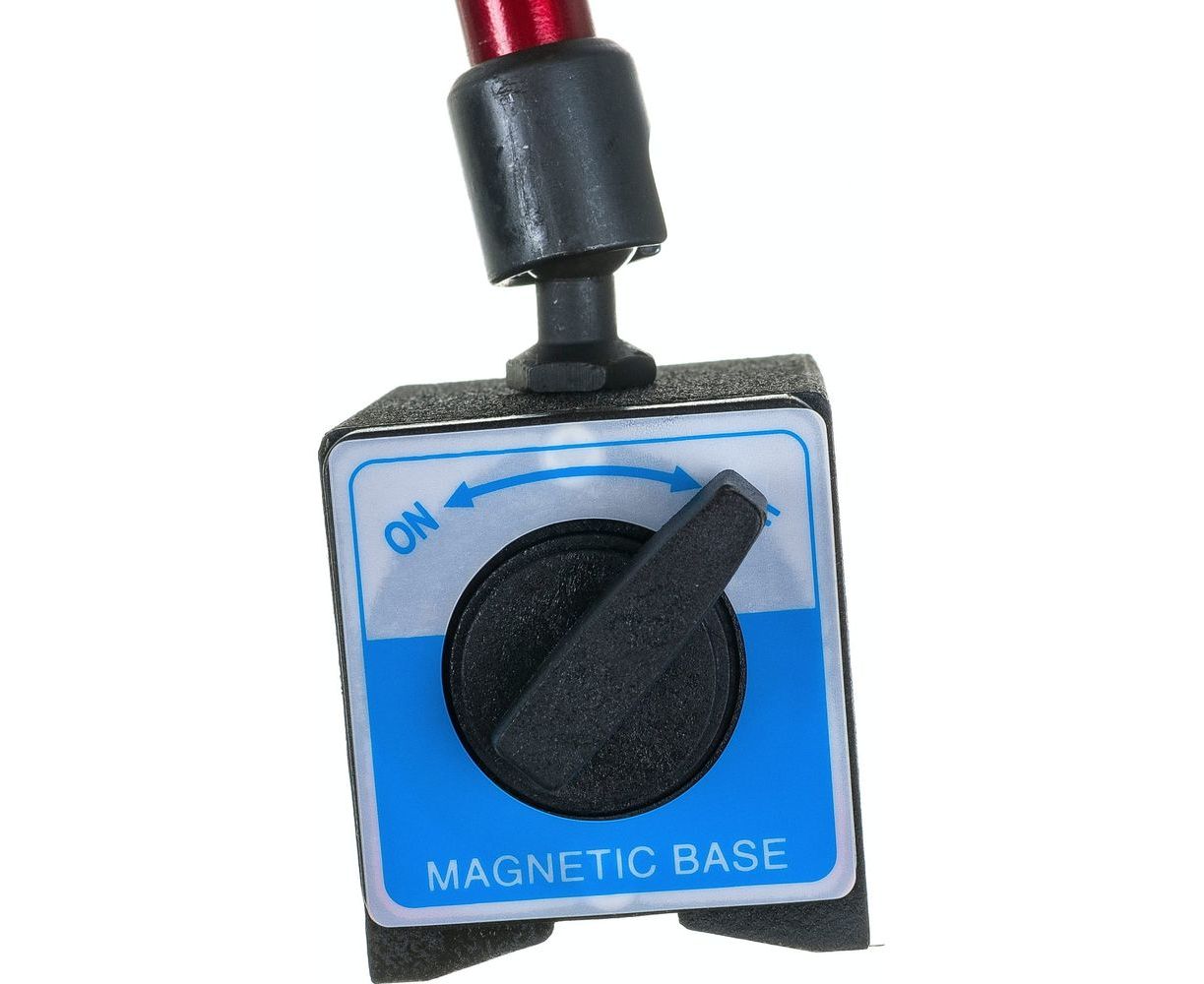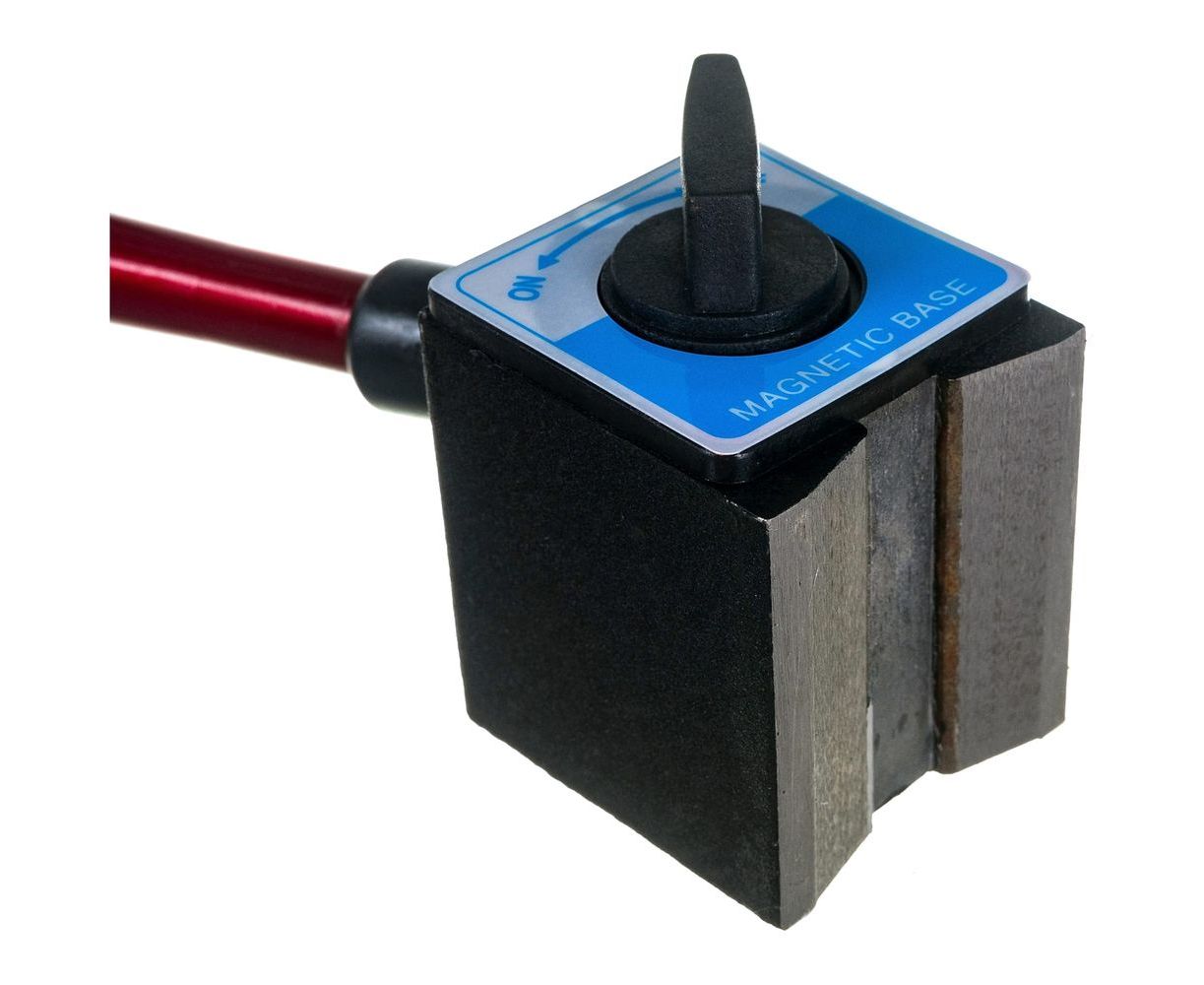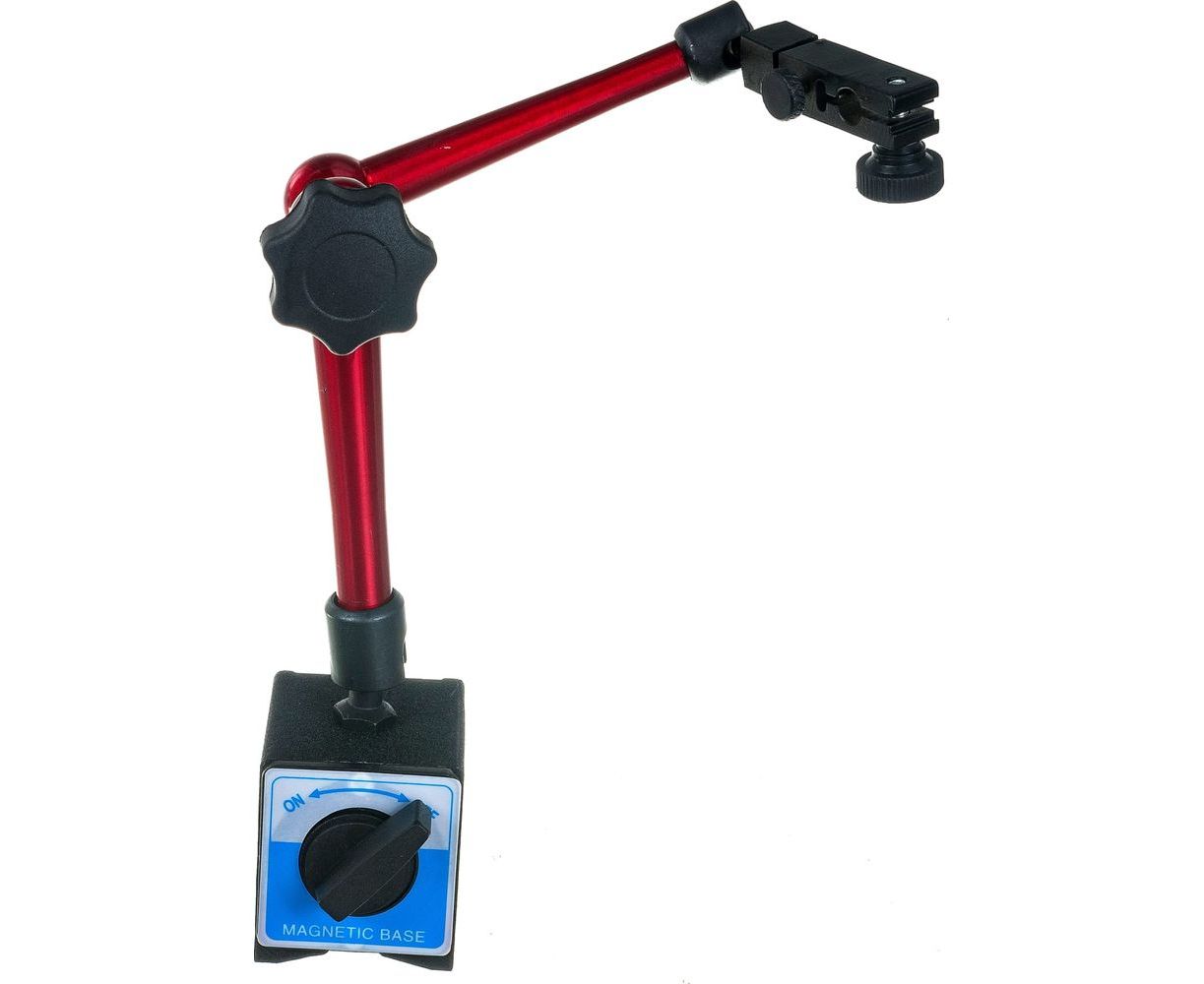 Два сферических шарнира в конструкции штатива позволяют быстро разместить измерительную головку в нужном месте. Гидравлическая система плавно увеличивает усилие фиксации шарниров, обеспечивая высокую точность установки. Магнитное основание защищает штатив от случайных перемещений и опрокидывания, а также даёт возможность установки на вертикальных поверхностях. Механизм тонкой подачи позволяет точно выставить направление измерения (перпендикулярно к поверхности измерения).