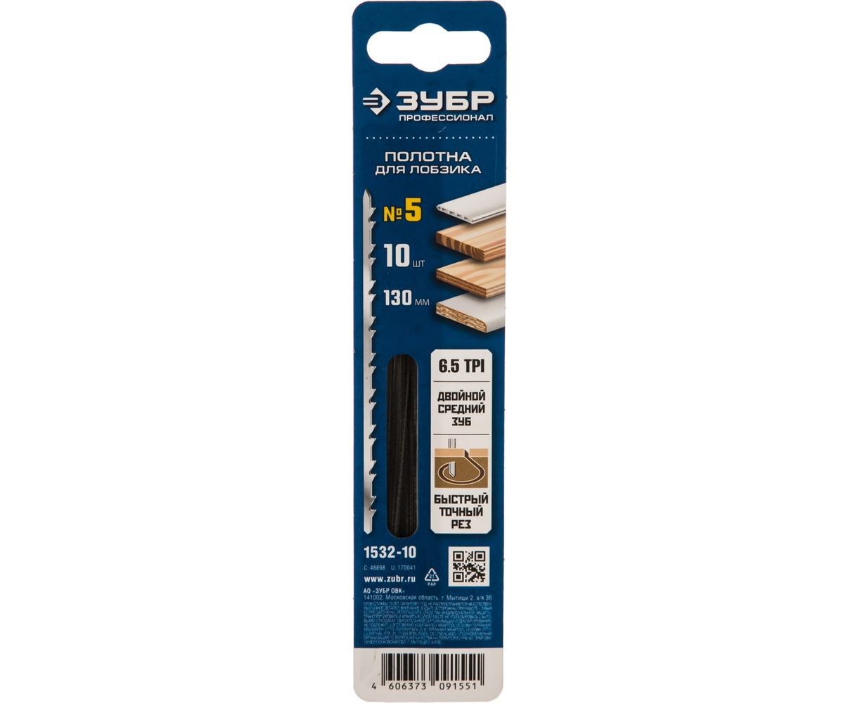 Полотно с двойным зубом "ЭКСПЕРТ" 10 шт. (тип №5; 130мм) для лобзика ЗУБР 1532-10