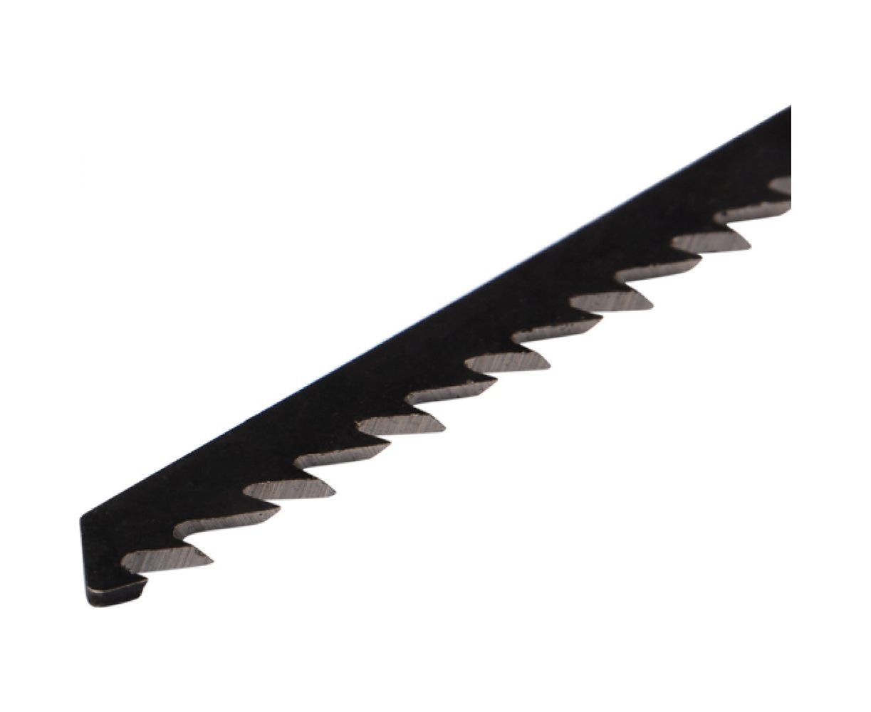 Пилка для лобзика по дереву T244D 100 мм, шаг 4.2 мм, фигурный рез, 2 шт KRANZ KR-92-0312 с улучшенной заточкой зубьев предназначена для работ по дереву. Она отлично подходит для всех марок электролобзиков с креплением для Т-образного хвостовика и надежно фиксируется в патроне.
