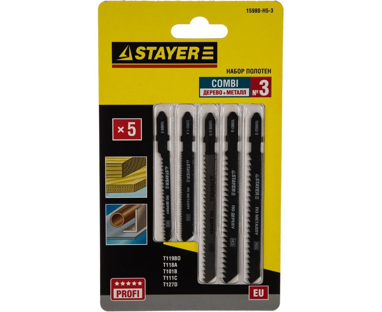 Набор полотен STAYER Универсал №3 по дереву металлу и пластику для электролобзика EU T111C T119B T101B T118A T127D 5 шт. 15980-H5-3