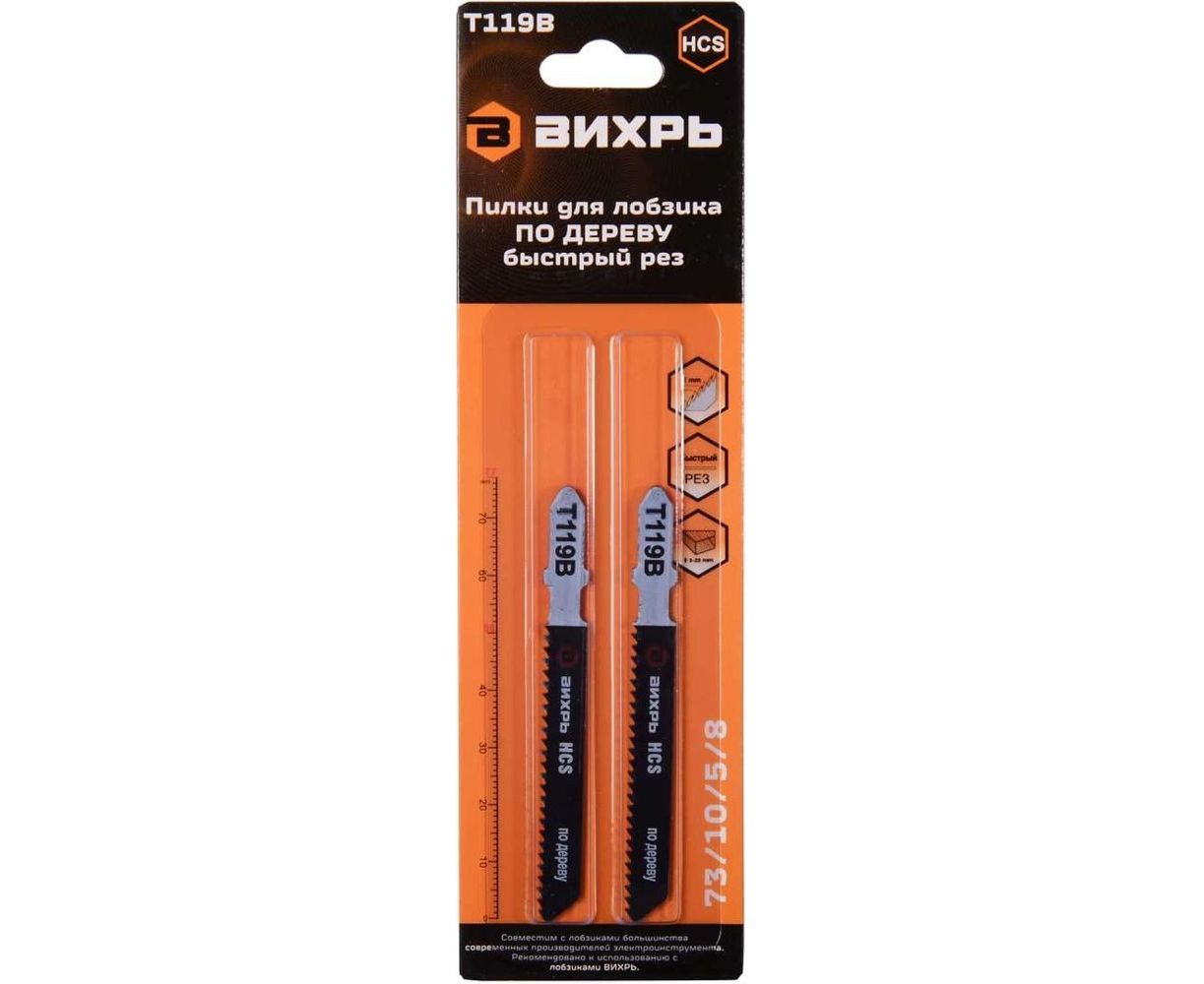 Пилки для лобзика Т119В Вихрь 73/10/5/8 используются с электролобзиками для выполнения быстрого пропила дерева, толщиной от 3 до 20 мм.