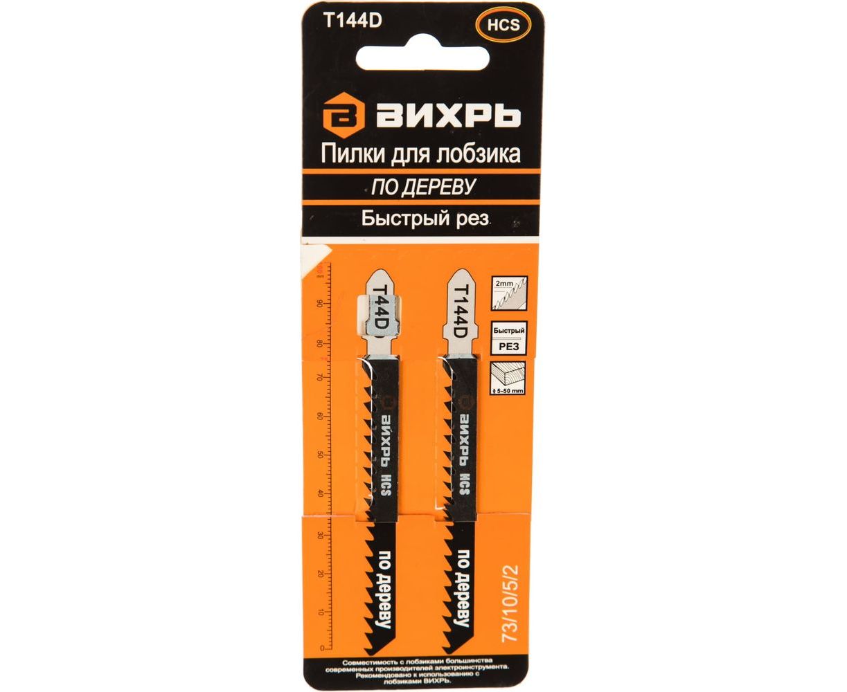 Пилки для лобзика Т144D по дереву, быстрый рез 100х75 мм, 2 шт. Вихрь 73/10/5/2
