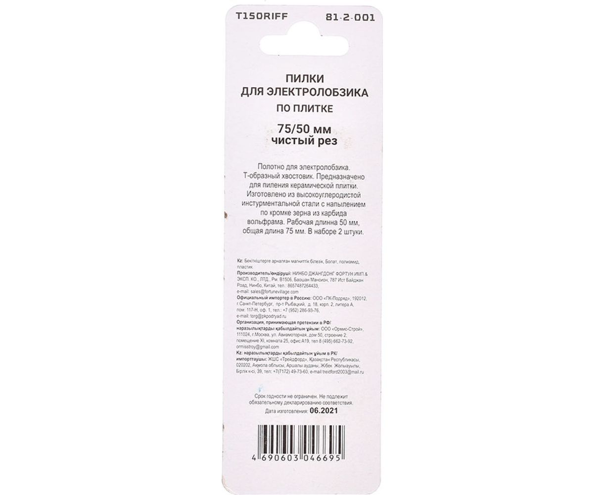 Полотно T150RIFF 2 шт, 75/50 мм, чистый рез, карбидное зерно для электролобзика РемоКолор 81-2-001
