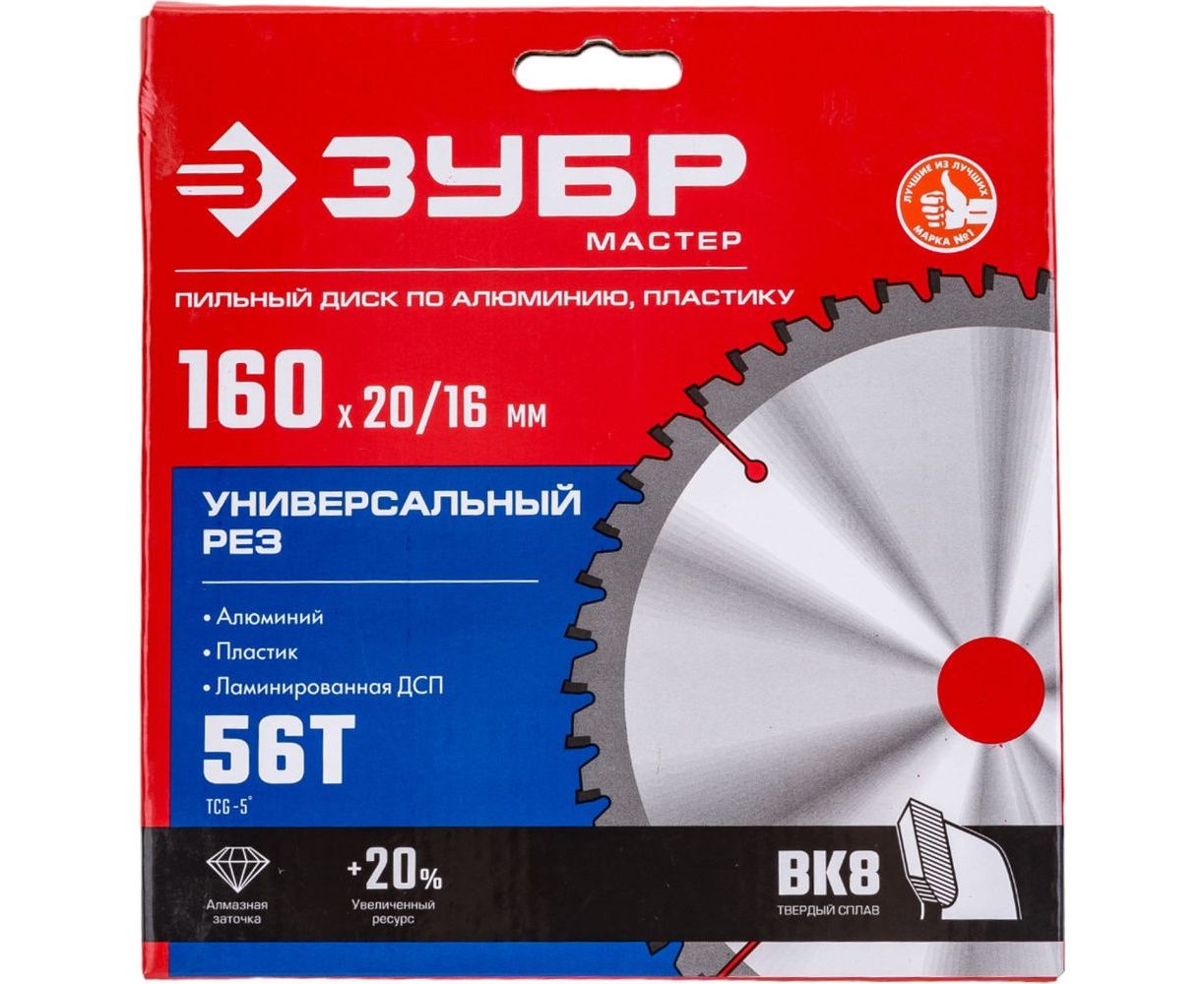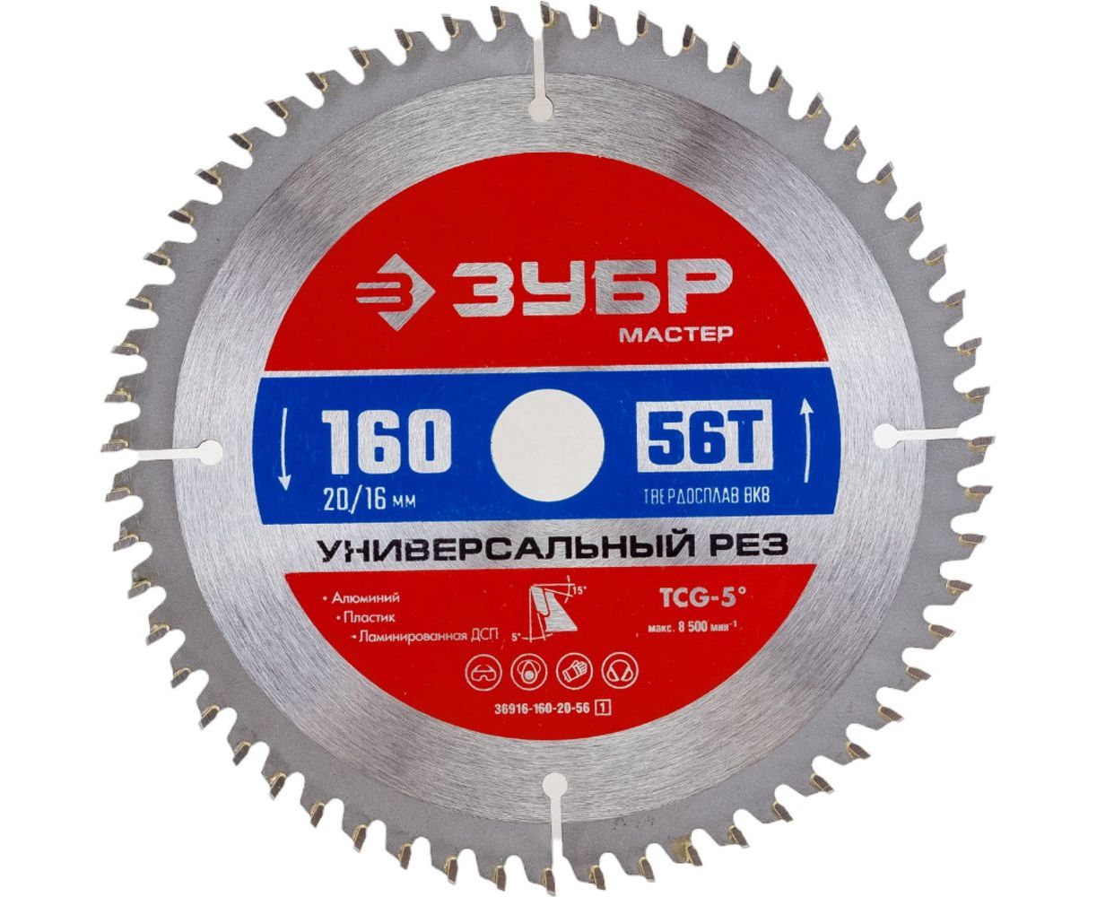 Диск пильный по алюминию ЗУБР Универсальный рез 160x20/16 мм, 56Т 36916-160-20-56_z01