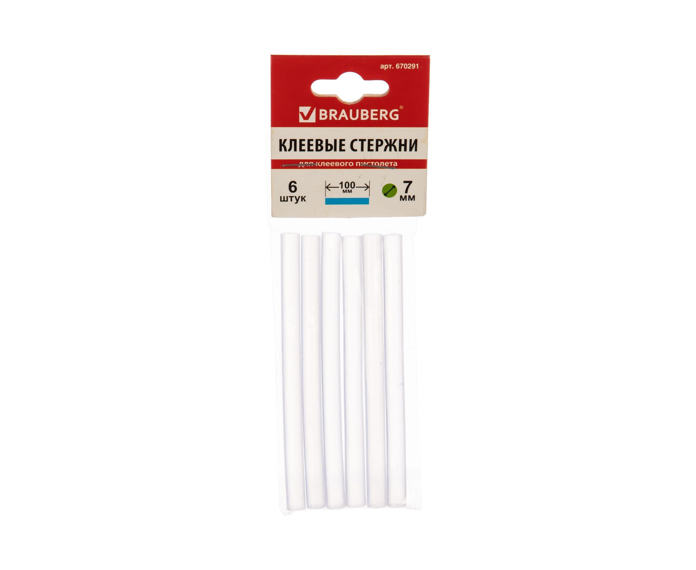Клеевые стержни, диаметр 7 мм, длина 100 мм, прозрачные, комплект 6 шт. BRAUBERG 670291