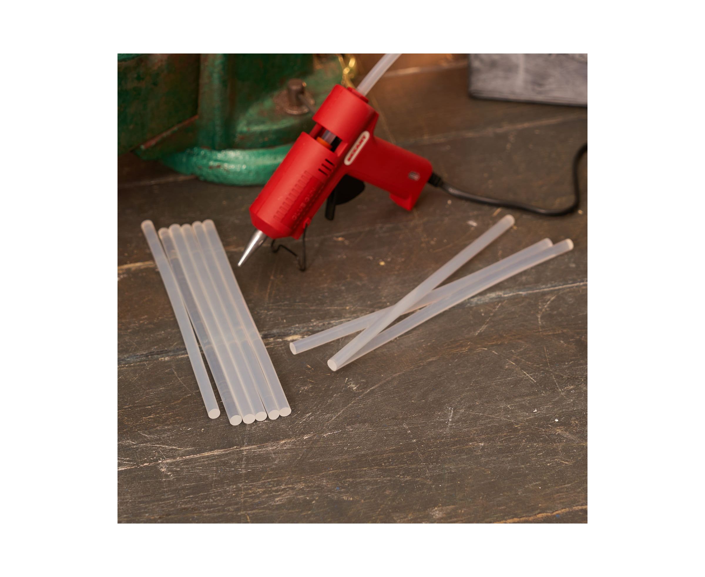Надежно фиксирует: бумагу, картон, дерево, стекло, пластик, кожу, керамику, камень и другие материалы. Клеевой пистолет подбирается в соответствии с диаметром стержня. Расходный материал не является термореактивным, при повторном нагревании его можно расплавить.