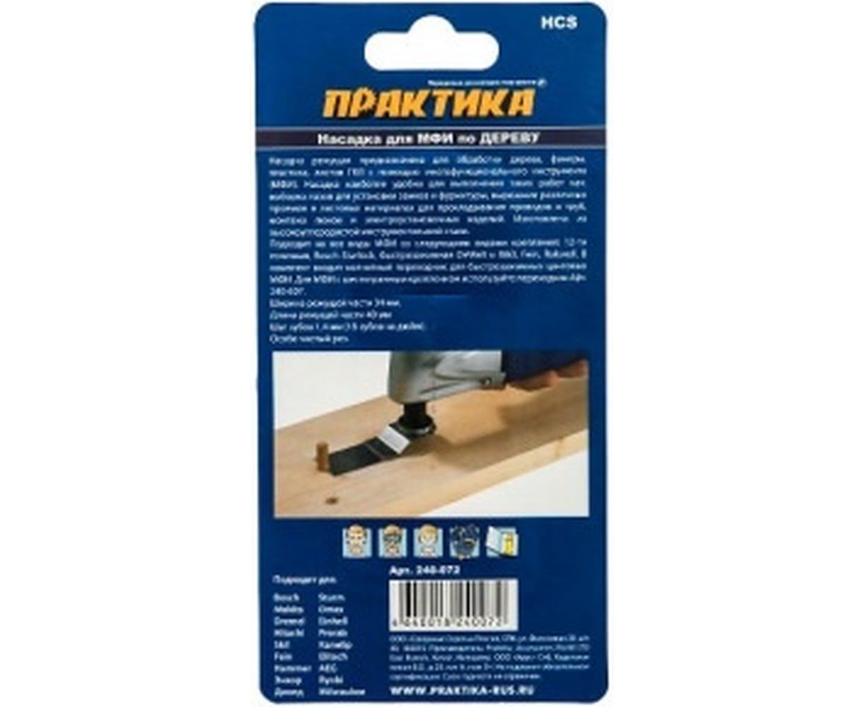 Насадка для МФИ по дереву (34 мм) мелкий зуб ПРАКТИКА 240-072 используется совместно с многофункциональным инструментом. Применяется для обработки деревянных и пластиковых изделий, фанеры, гипсокартона, прямолинейного реза, выборки пазов, вырезания различных проемов. Насадка изготовлена из высокоуглеродистой инструментальной стали.Параметры:Рабочая длина - 40 мм.Шаг зубьев - 1.4 мм.