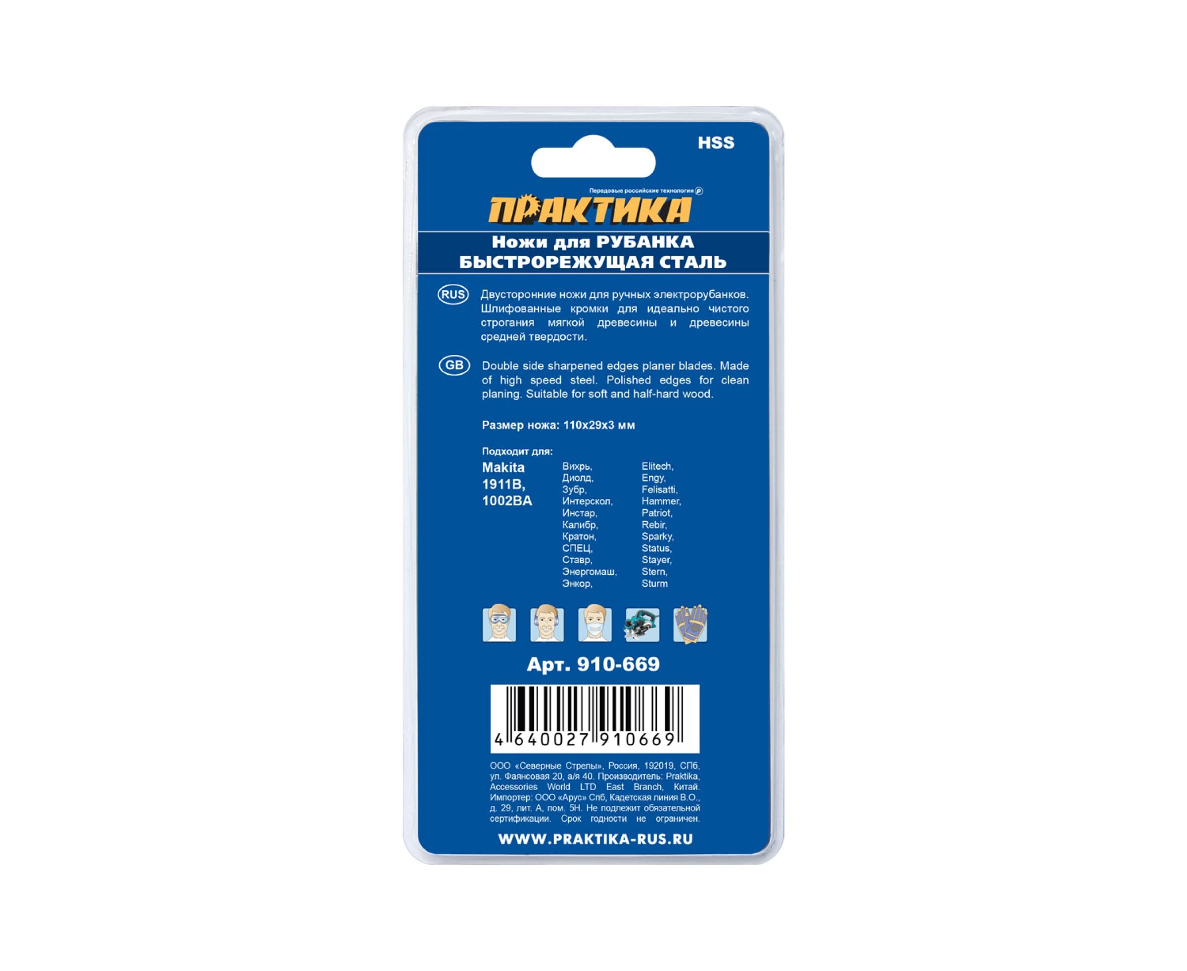 Нож для рубанка (110х29х3 мм, 2 шт, для Makita 1911) ПРАКТИКА 910-669