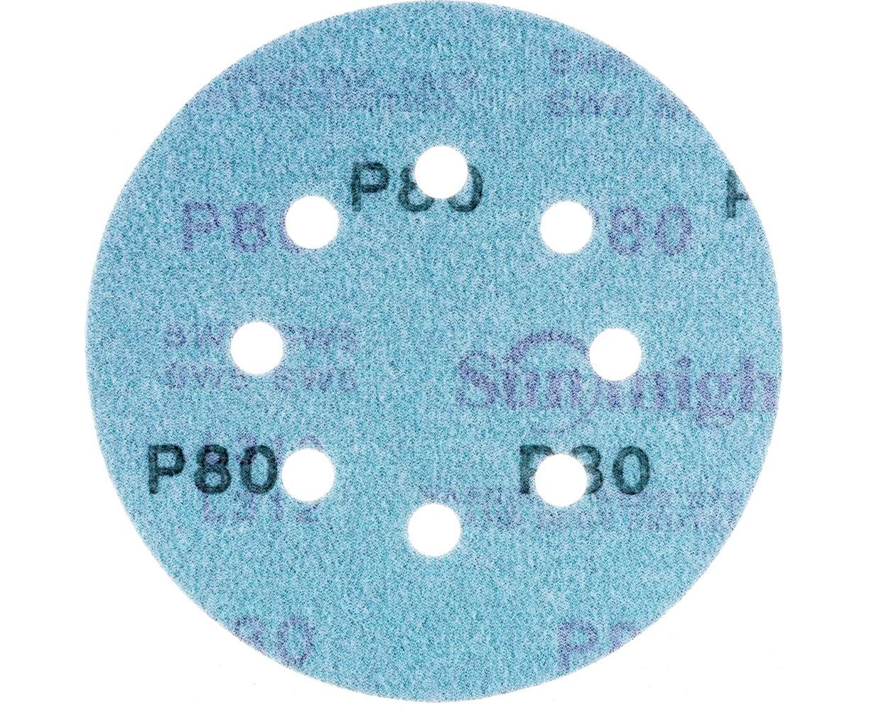 Круг шлифовальный FILM L312TV (100 шт; 125 мм; на липучке; 8 отв; зелёный; P80) SUNMIGHT 53206