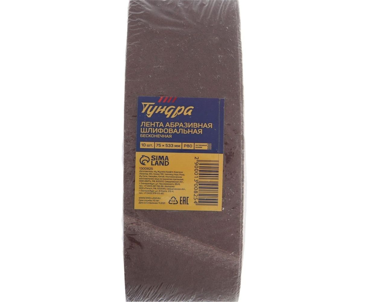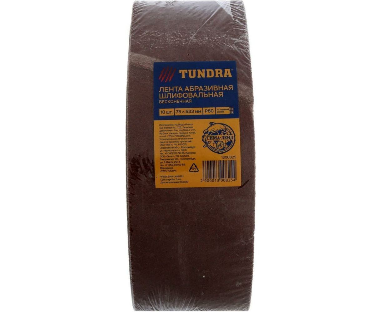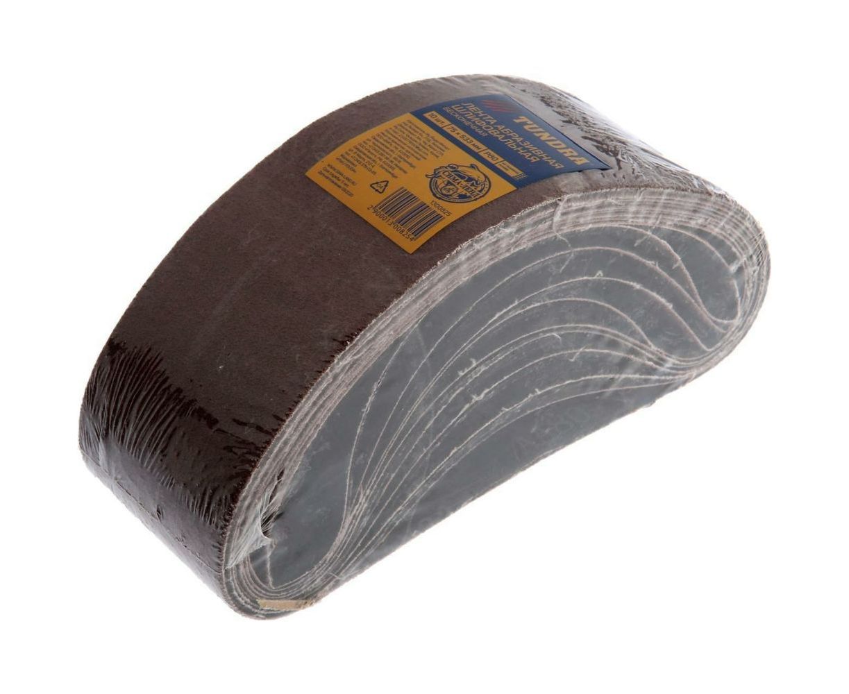 Лента абразивная бесконечная на тканевой основе (10 шт; 75х533 мм; Р80) ТУНДРА 1300825