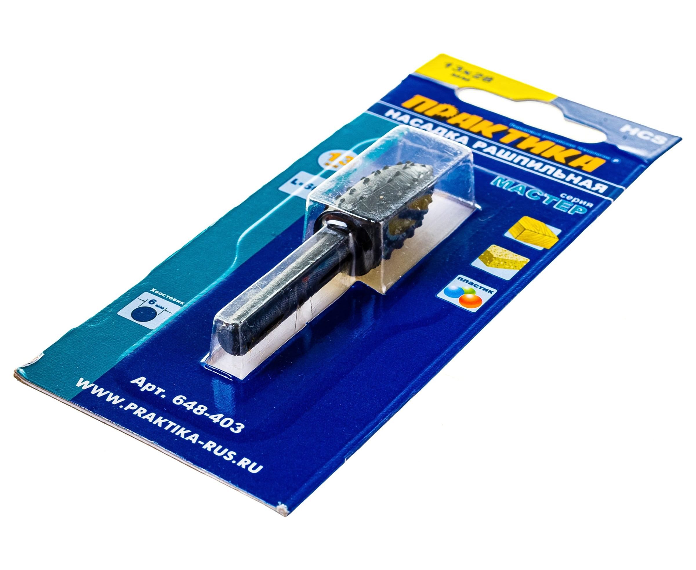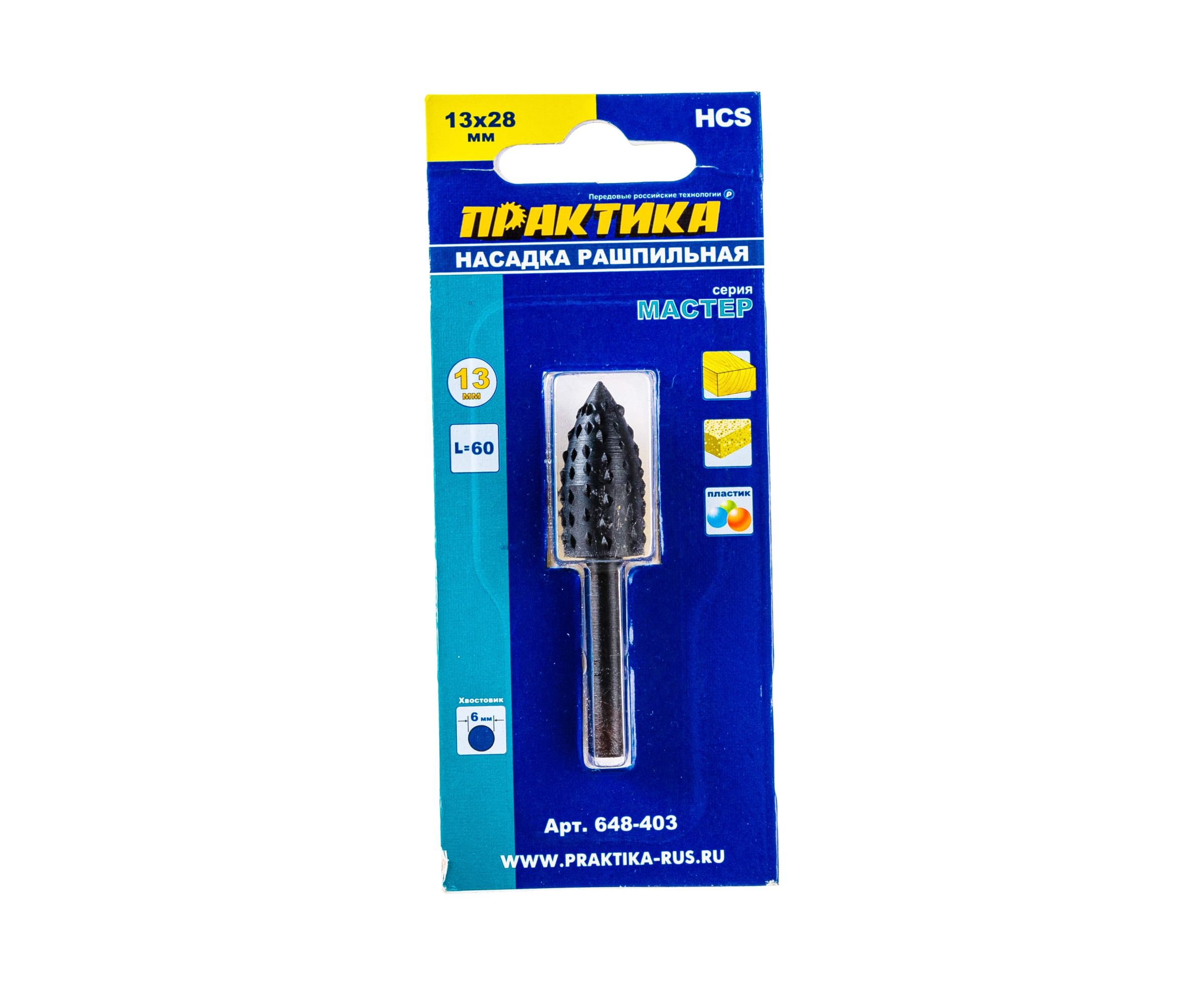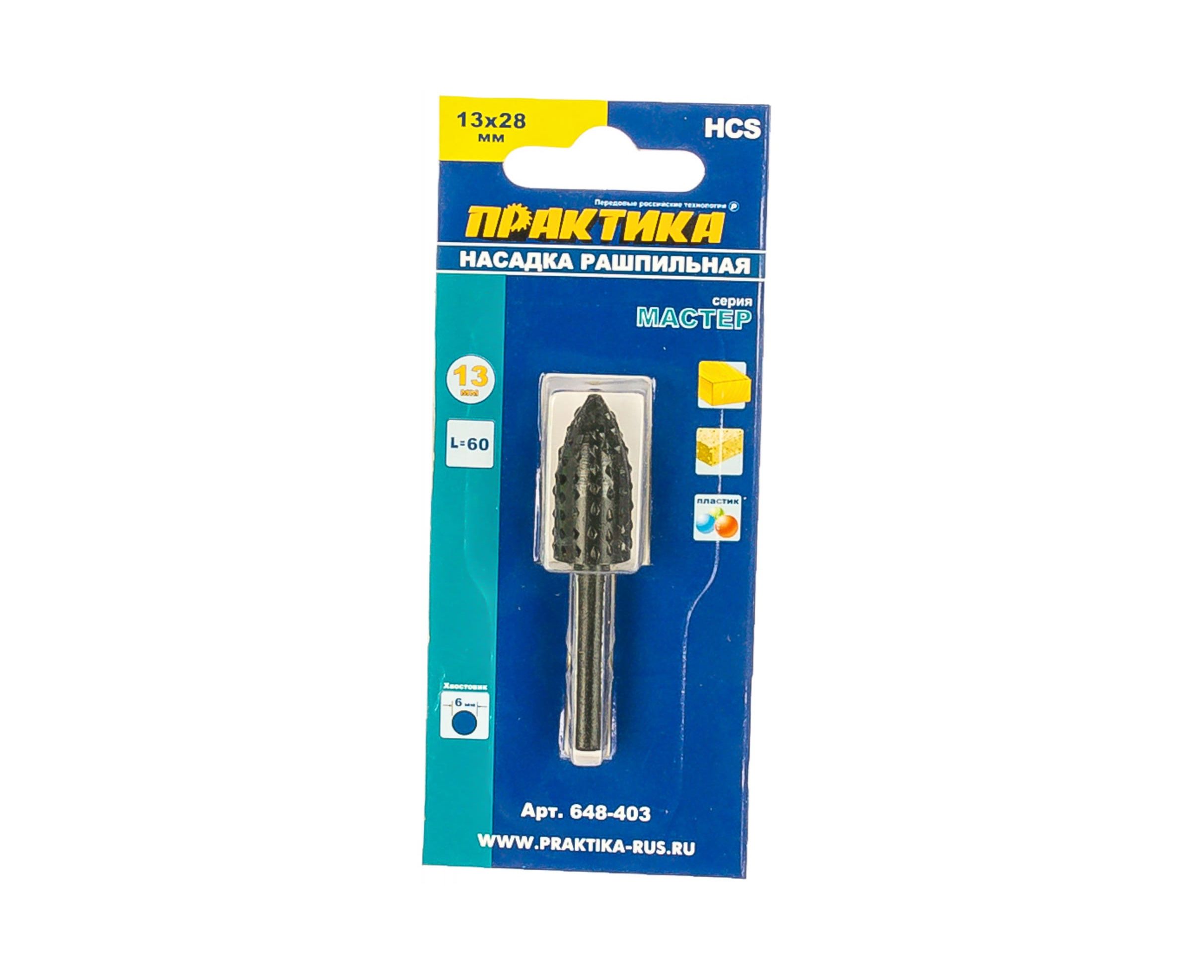 Шарошка стальная параболическая удлиненная по дереву (13х28 мм) ПРАКТИКА 648-403