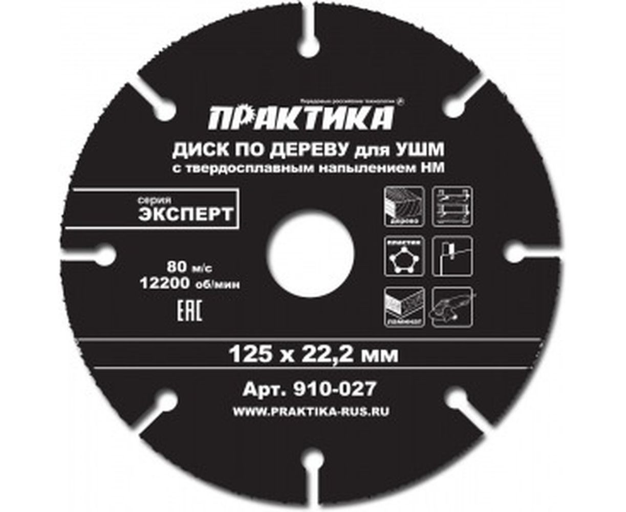 Диск по дереву (с твердосплавным зерном, 125х22 мм, для УШМ) ПРАКТИКА 910-027