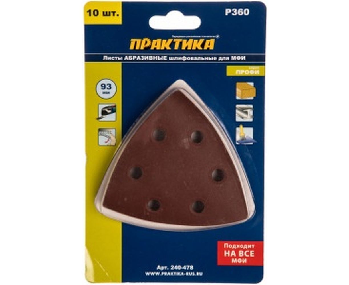 Набор шлифовальных листов дельтавидных (93 мм; Р360) 10 шт. ПРАКТИКА 240-478