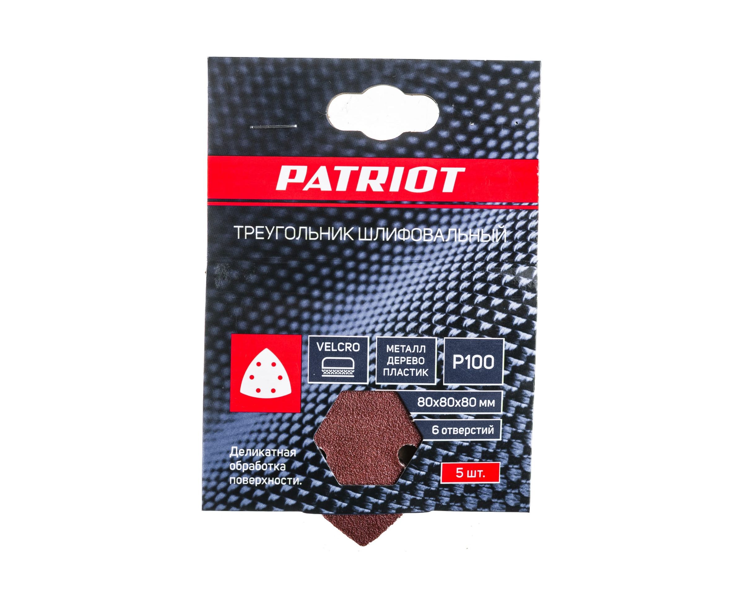 Треугольник шлифовальный на липучке (5 шт; 80х80х80 мм; Р100) PATRIOT 820010303