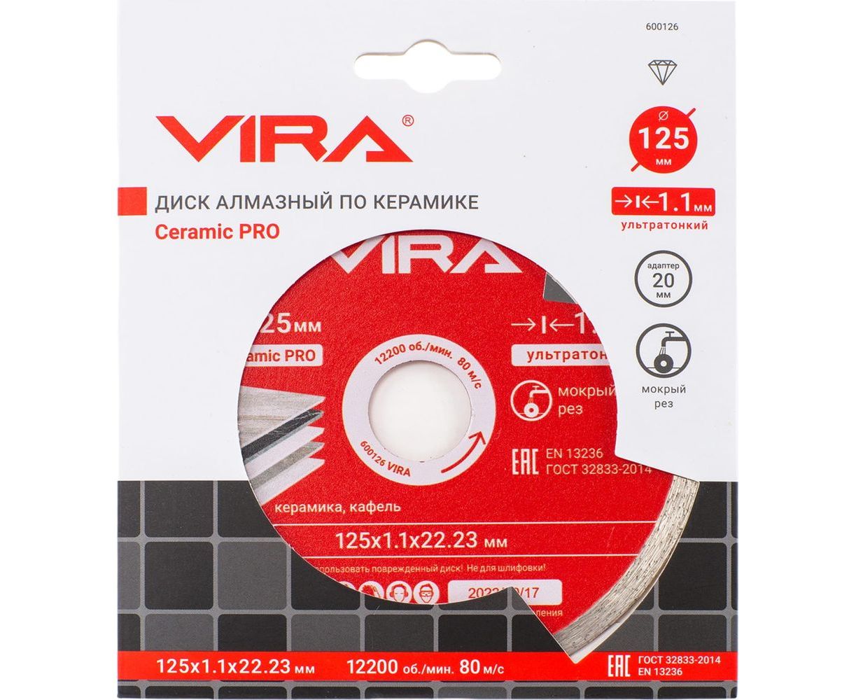 Диск алмазный по керамике сплошной ультратонкий 125 мм VIRA 600126