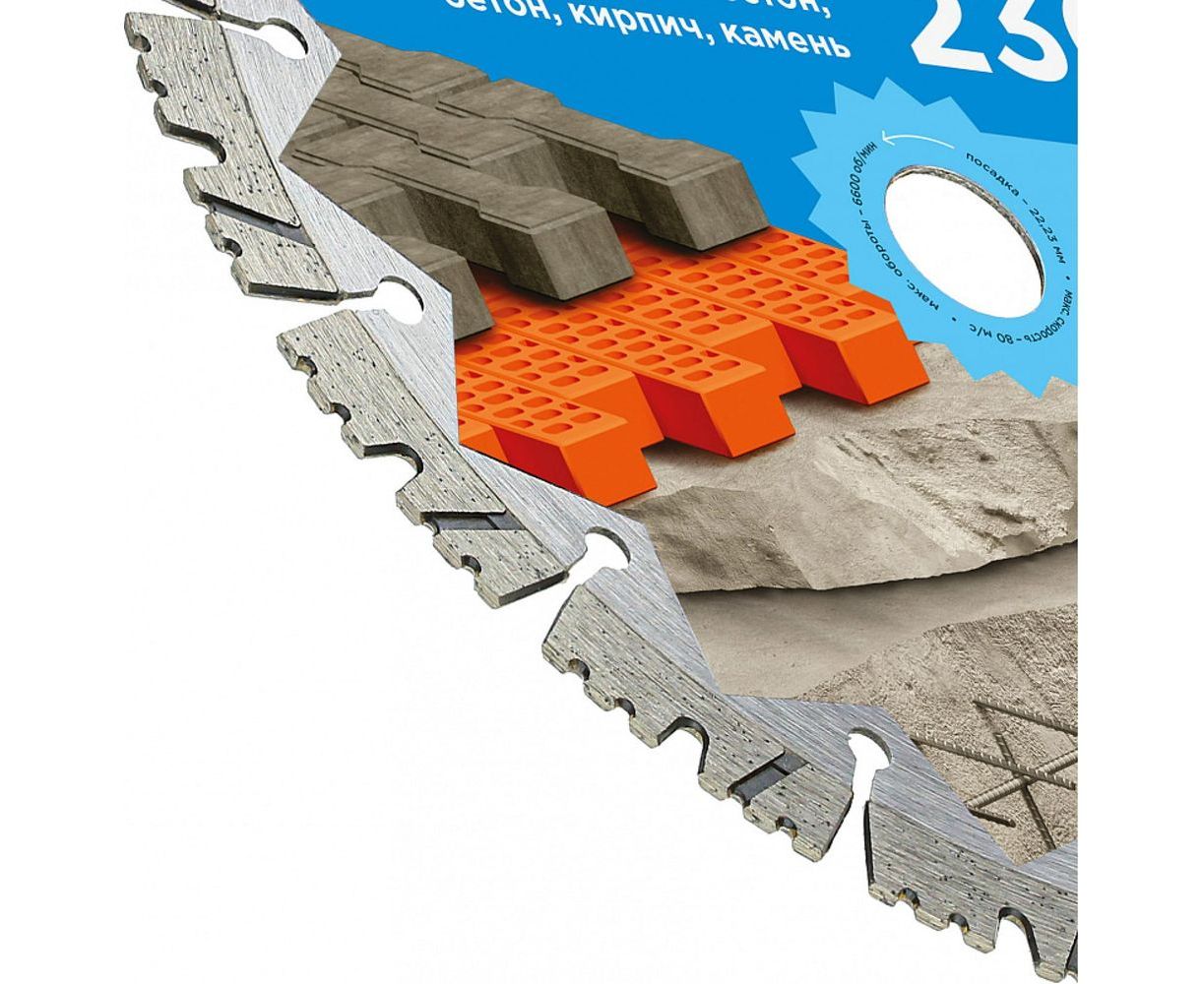 Диск алмазный сегментный по армированному бетону Bullet 230x22.2 мм Kronger B200230B идеален для штробления под электропроводку и водопровод.