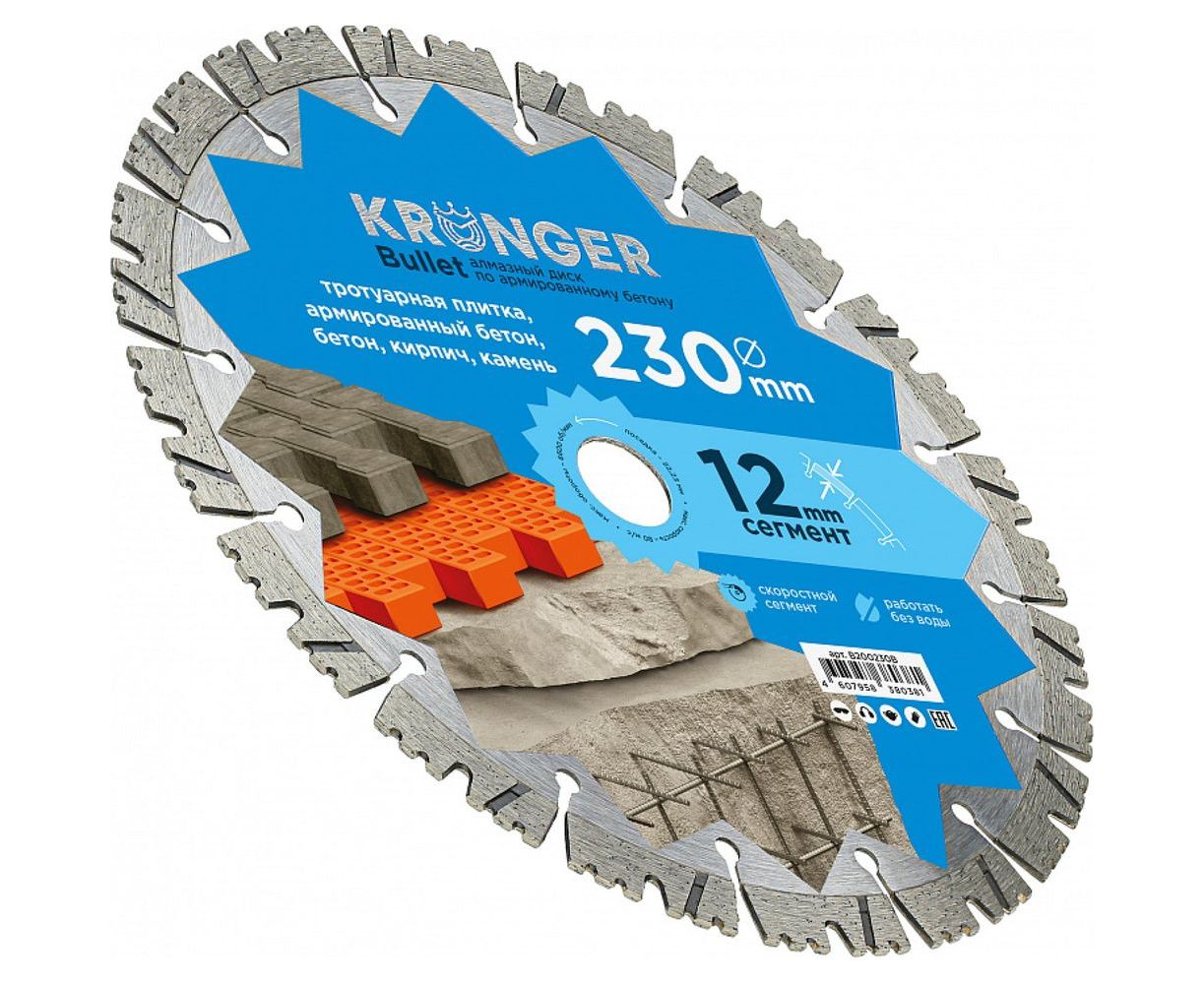 Диск алмазный сегментный по армированному бетону Bullet 230x22.2 мм Kronger B200230B