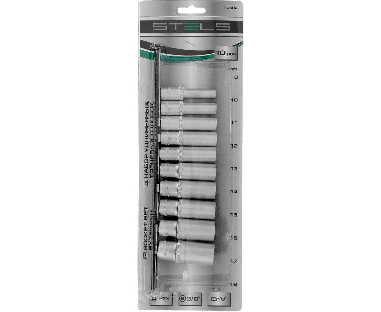 Набор удлиненных торцевых головок 3/8"", 6-ти гр CrV, 8-19 мм, 10 шт. STELS 13604