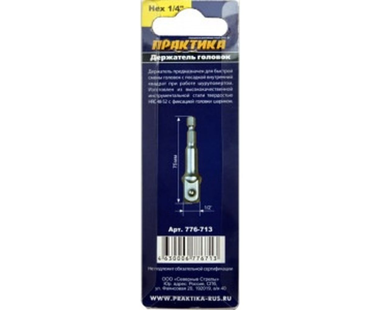 Адаптер квадрат 1/2 для головок, длина 75 мм ПРАКТИКА 776-713