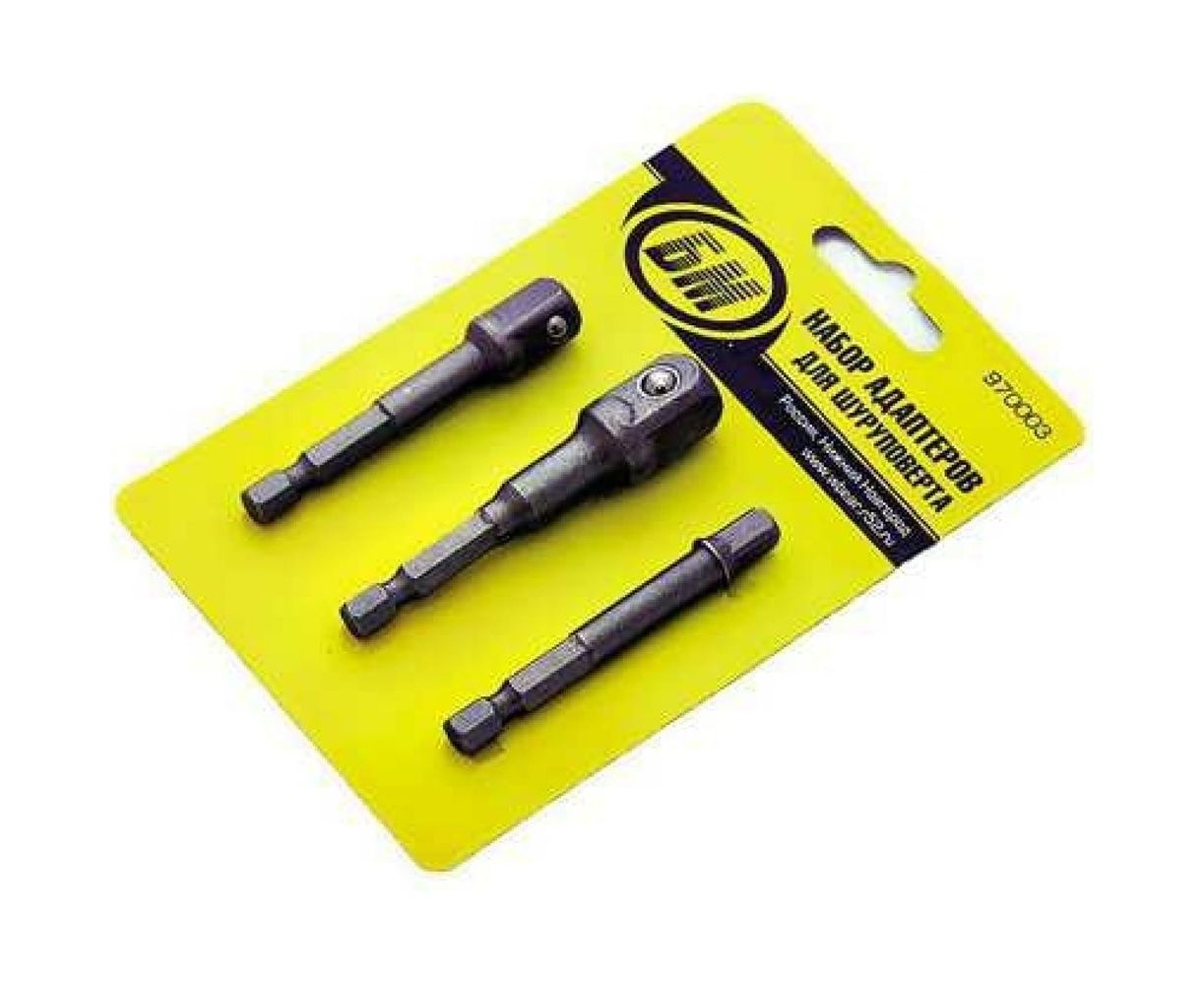 Набор адаптеров 3 шт БМ 970003 предназначен для торцевых головок, обеспечивает быструю смену и надежную фиксацию при работе шуруповертом.