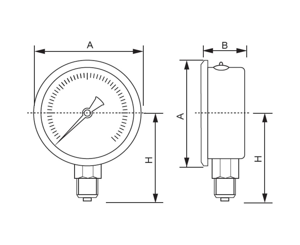 Манометр от 0 до 2.5 бар из нержавеющей стали, D50 мм, NPT 1/4"", штуцер снизу A-Flow G20-S-4N-50A-2,5bar