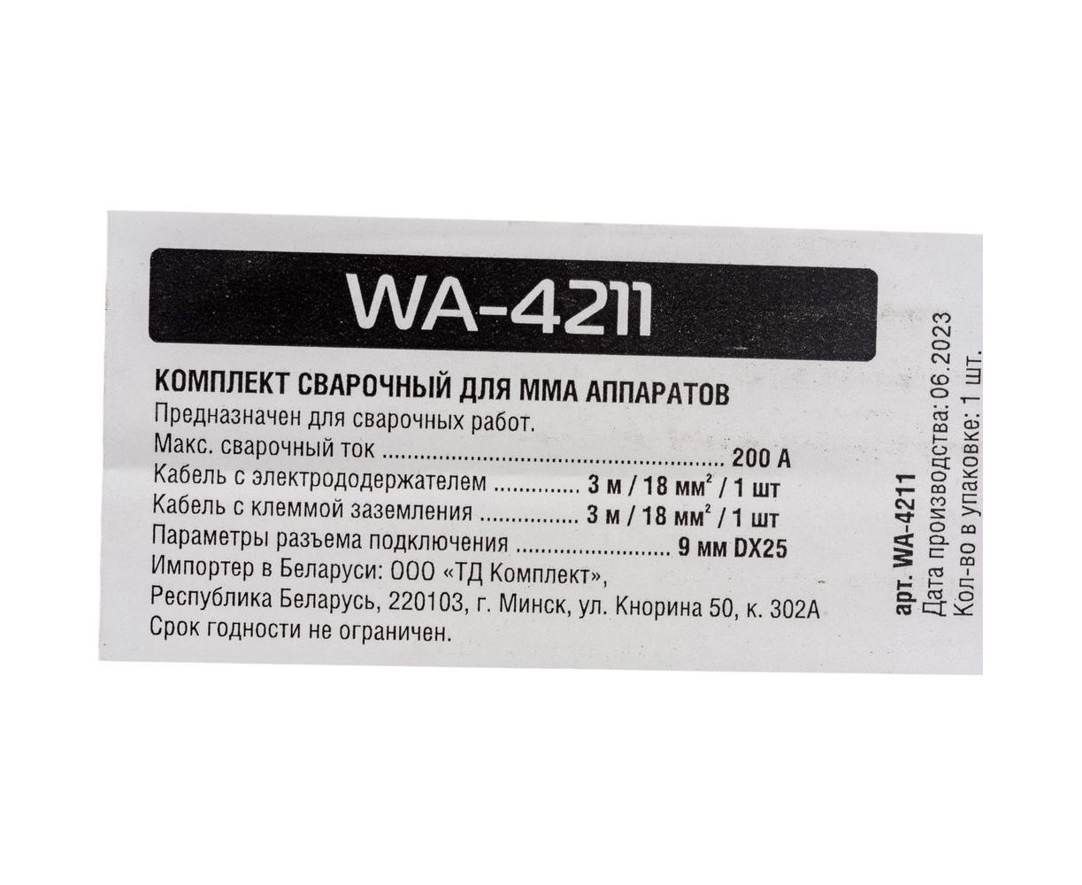Комплект сварочный для MMA, 200А, 3 м, разъем DX25 SOLARIS WA-4211