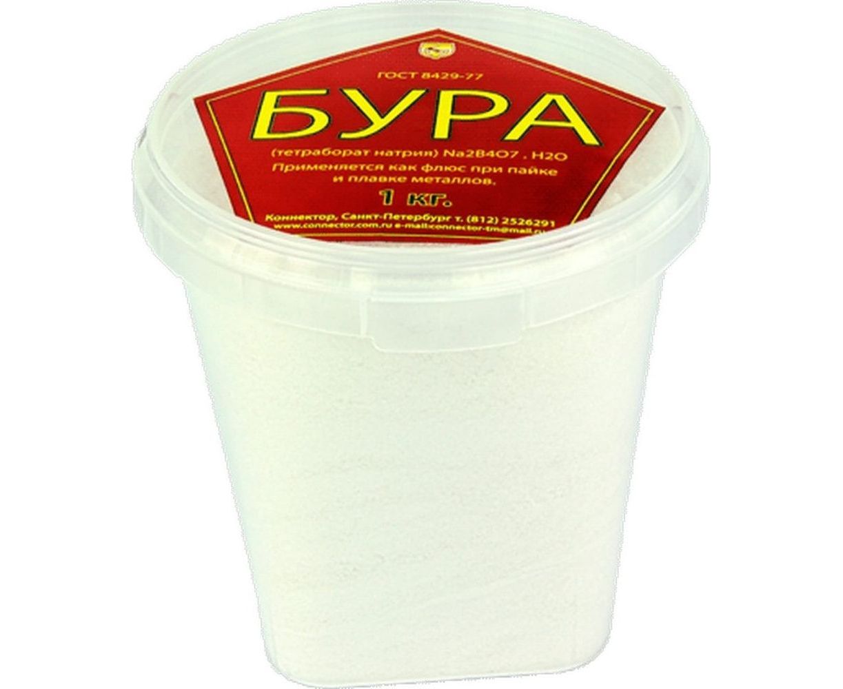 Флюс порошковый Бура 1 кг TECHHIM TH-BYRA-1000 это порошковый флюс, который используется для пайки углеродистых сталей, чугуна, меди, твердых сплавов медными и серебрянными паяльными сплавами. В отличие от жидких аналогов не кипит, не шипит, не разбрызгивается. Представляет собой сыпучий, бесцветный, кристаллический порошок тетрабората натрия.