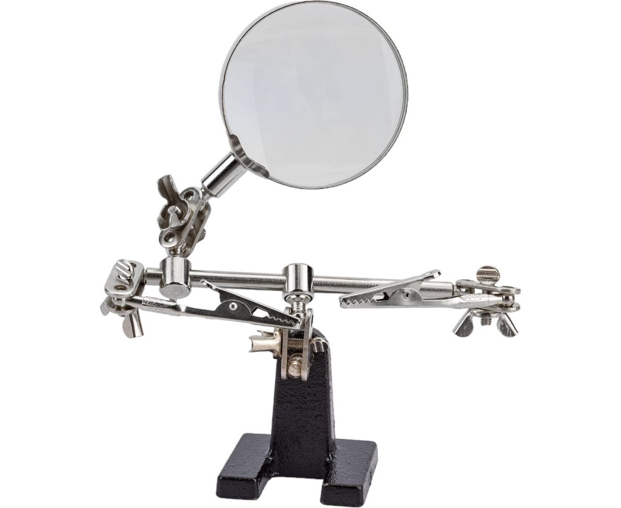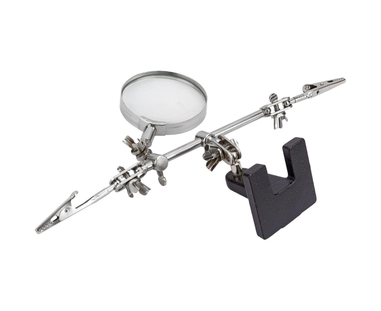 - Удобная регулировка угла наклона лупы и положения зажимов.