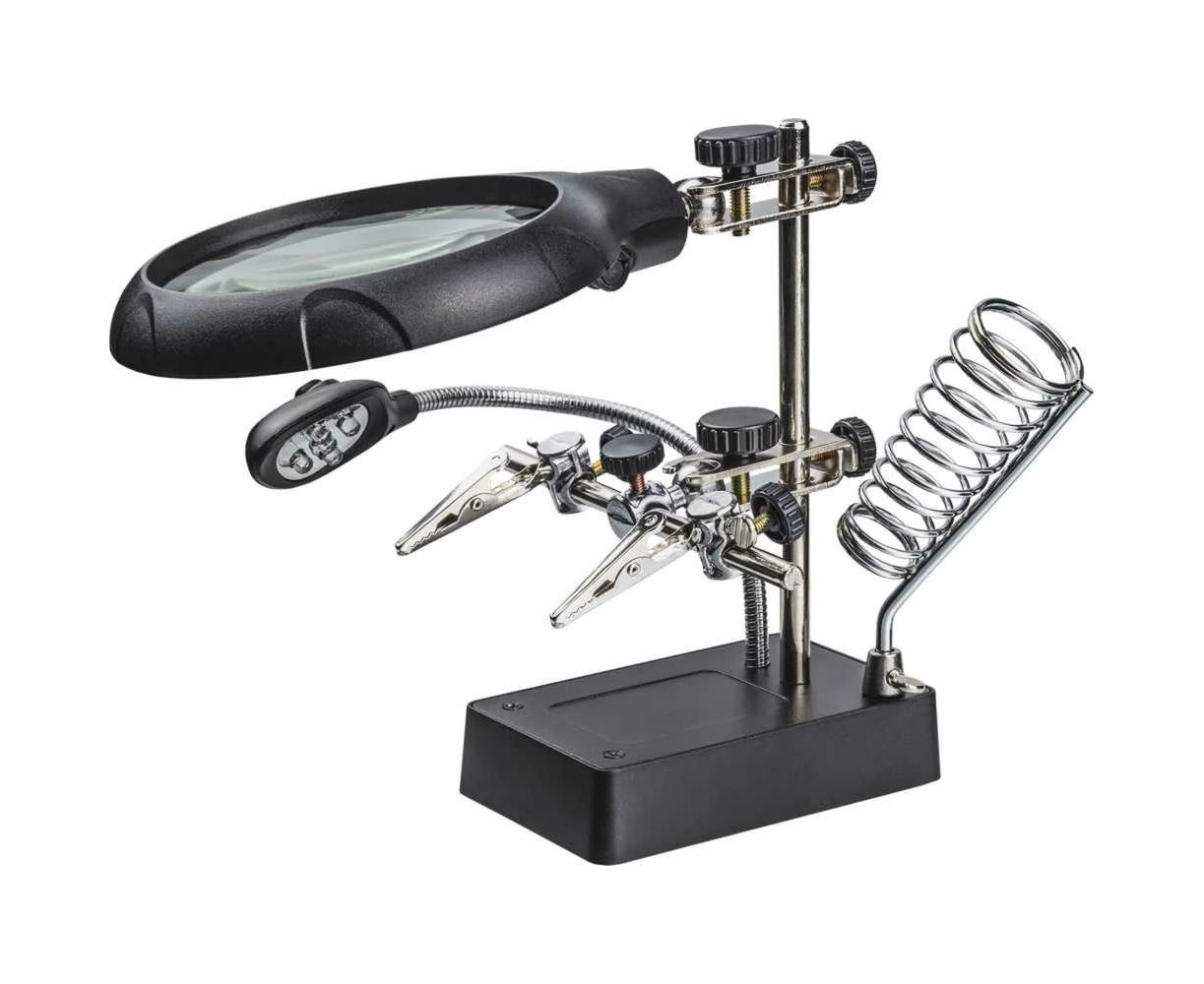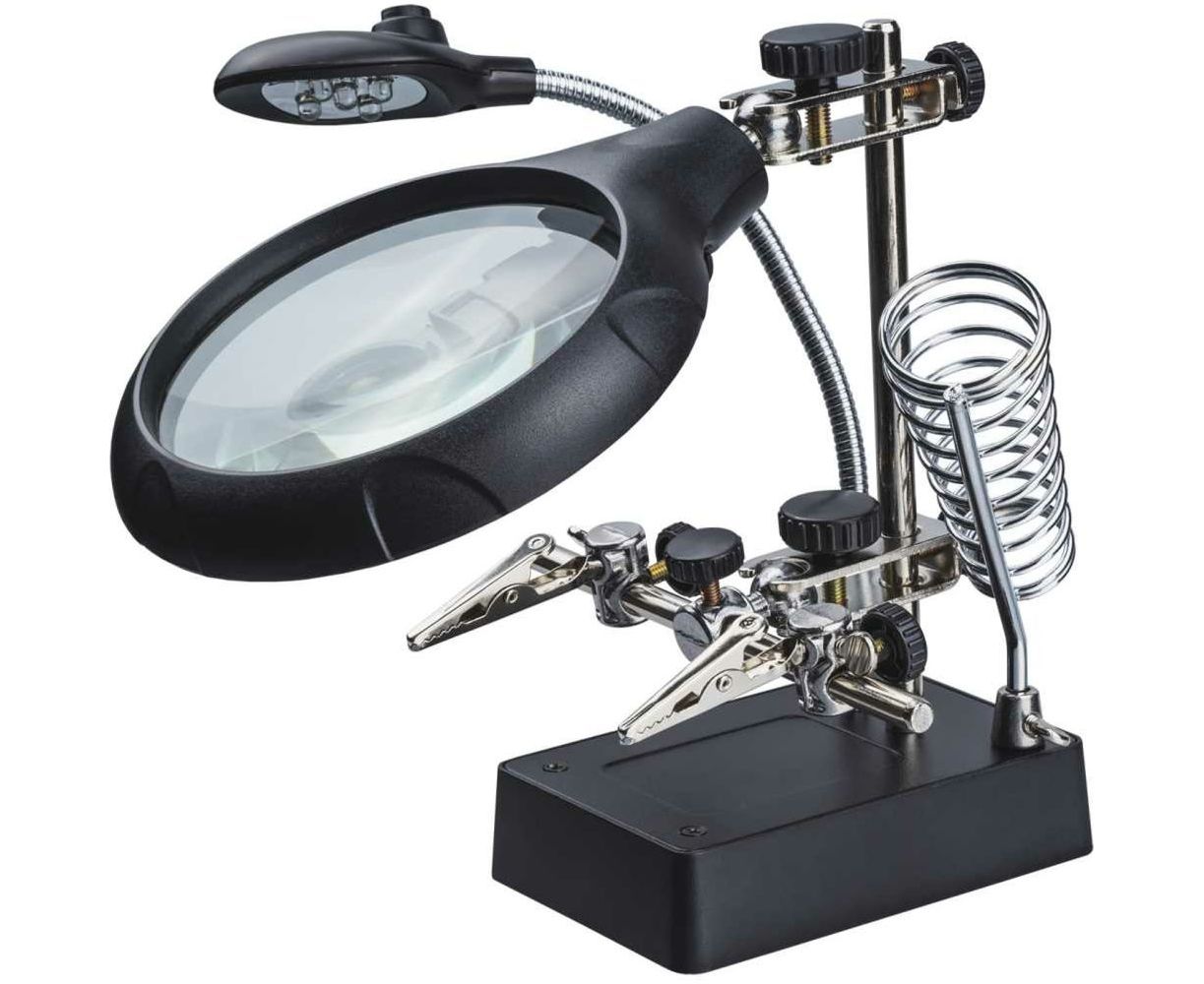 - 3 лупы с разным уровнем увеличения для точной работы с небольшими деталями и проводами.