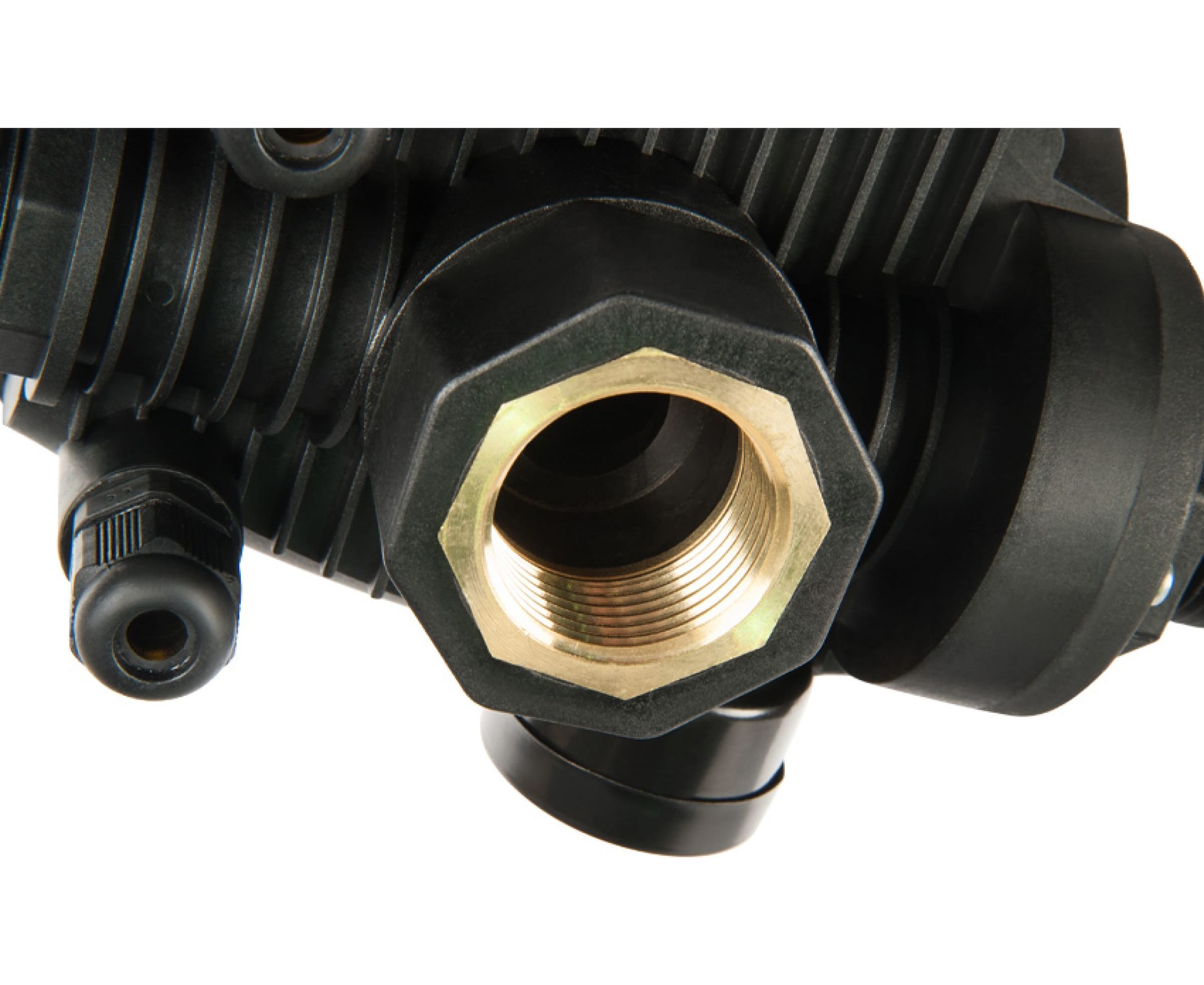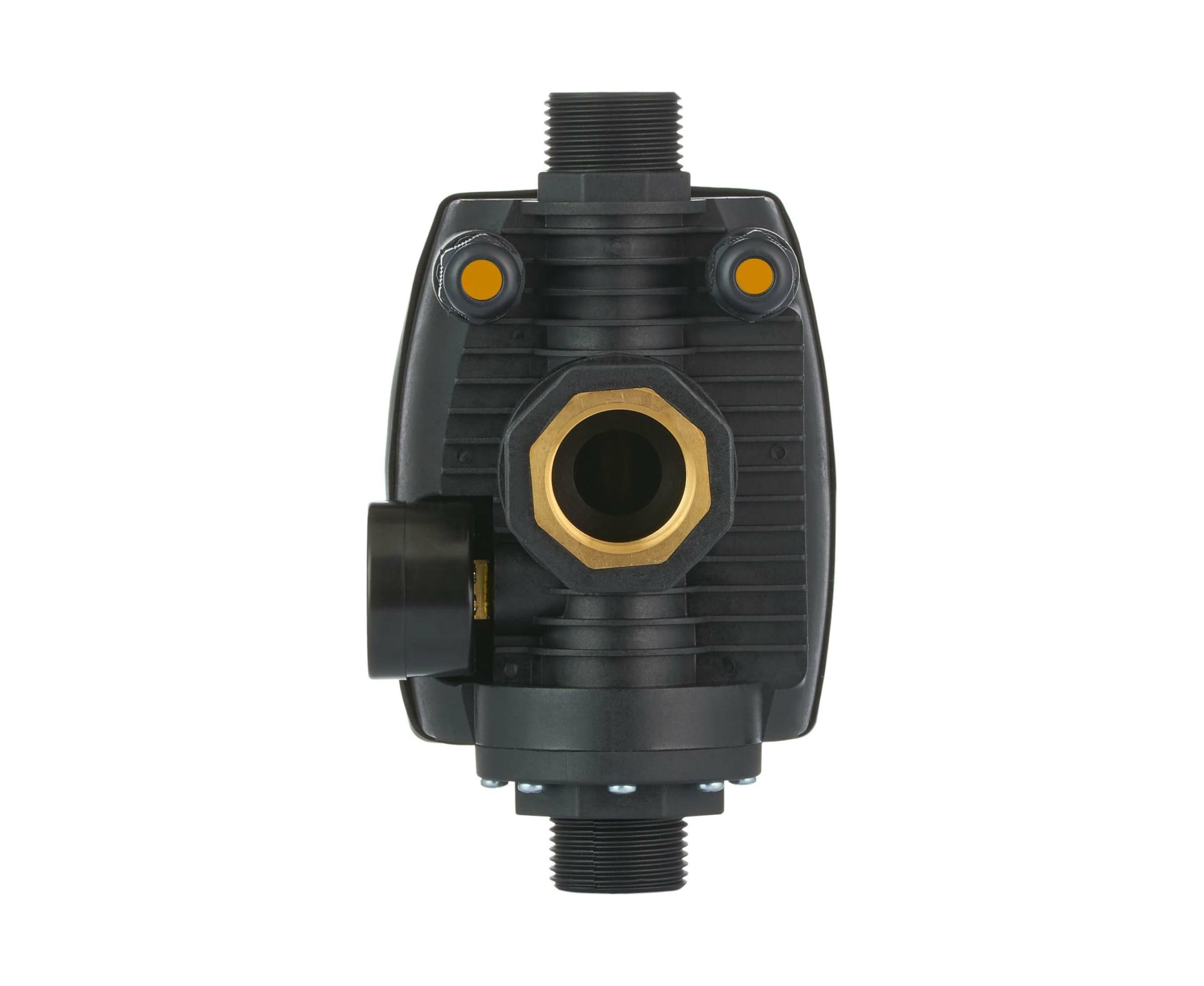 - Автоматически управляет работой насоса, поддерживая давление в системе водоснабжения между заданными пользователем порогами;