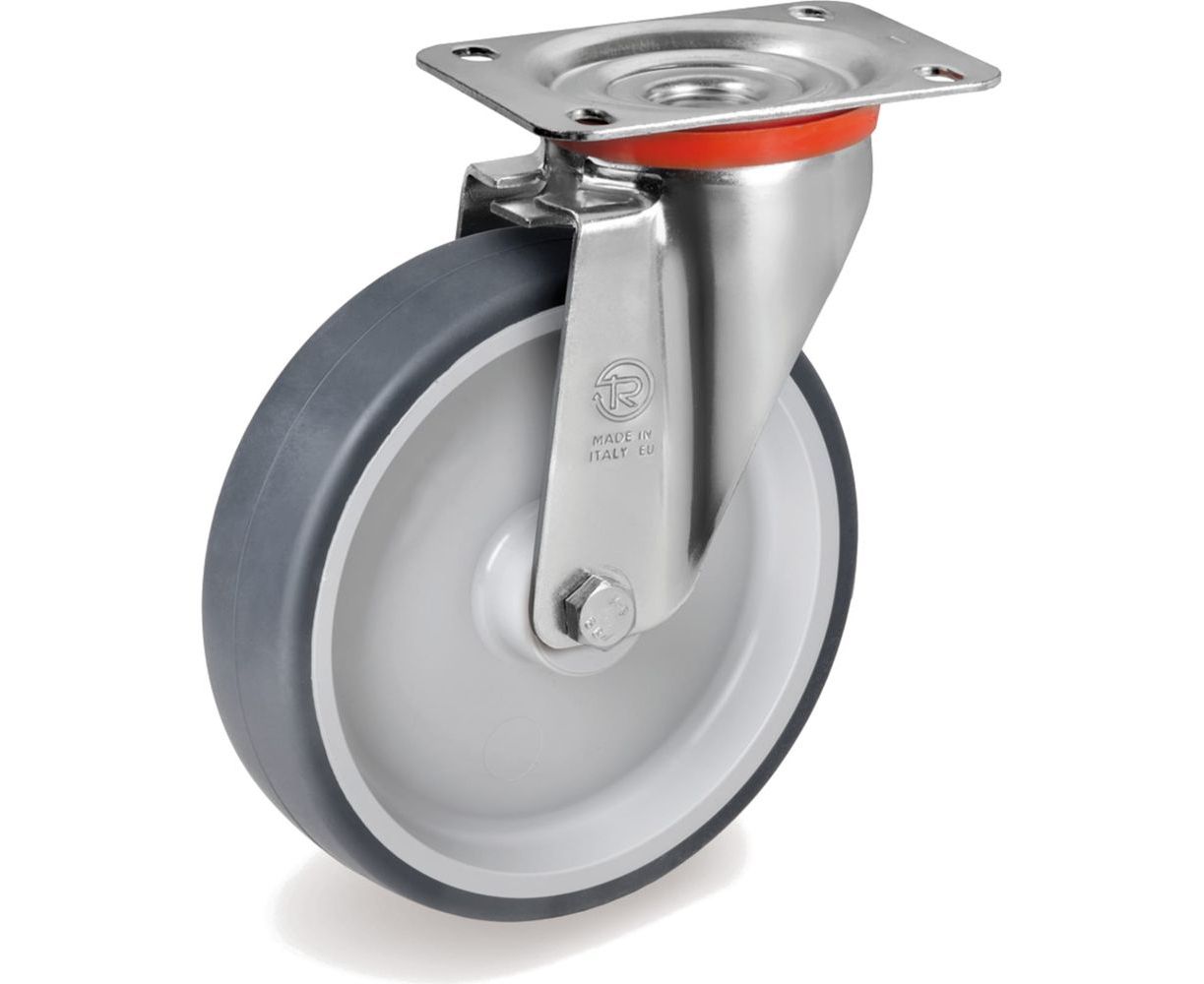 Колесо Tellure rota 714204 предназначено для тележек с легкой нагрузкой (тележки для багажа, тележки для инструмента). Применяется для внутренних работ в обрабатывающей промышленности и в бытовых, общественных учреждениях. Можно использовать во влажной среде, при наличии слабых кислот. Не применяется в среде с органическими растворителями, углеводородами, минеральными маслами, в среде с агрессивными химическими веществами. Шина выполнена из термопластичной серой резины, твердость – 85 шор А. Основание выполнено из полипропилена.
