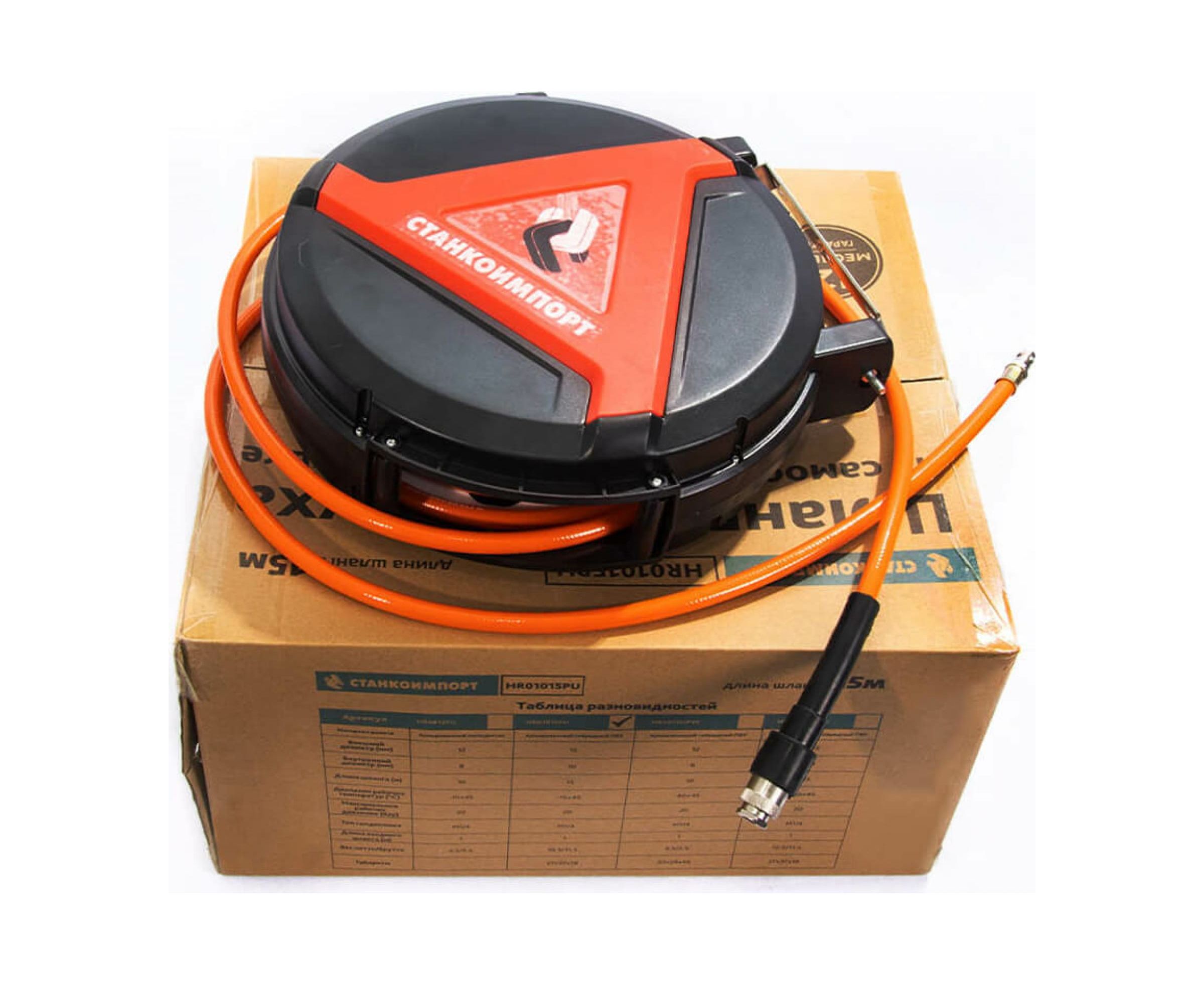 Шланг на самоскручивающейся катушке 8/12 мм, 10 метров СТАНКОИМПОРТ HR0812HPVC подает воздух от компрессора к пневматическому инструменту. Таким шлангом удобно пользоваться как в маленьких мастерских, так и на крупных СТО.
