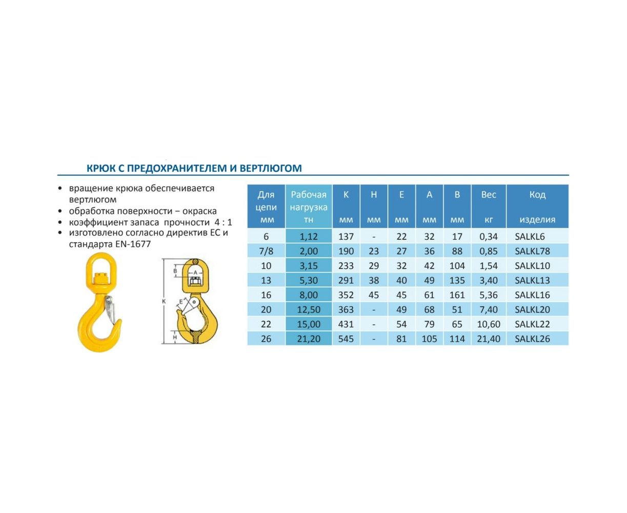 Крюк c предохранителем и вертлюгом 8.0 т Haklift SALKL16