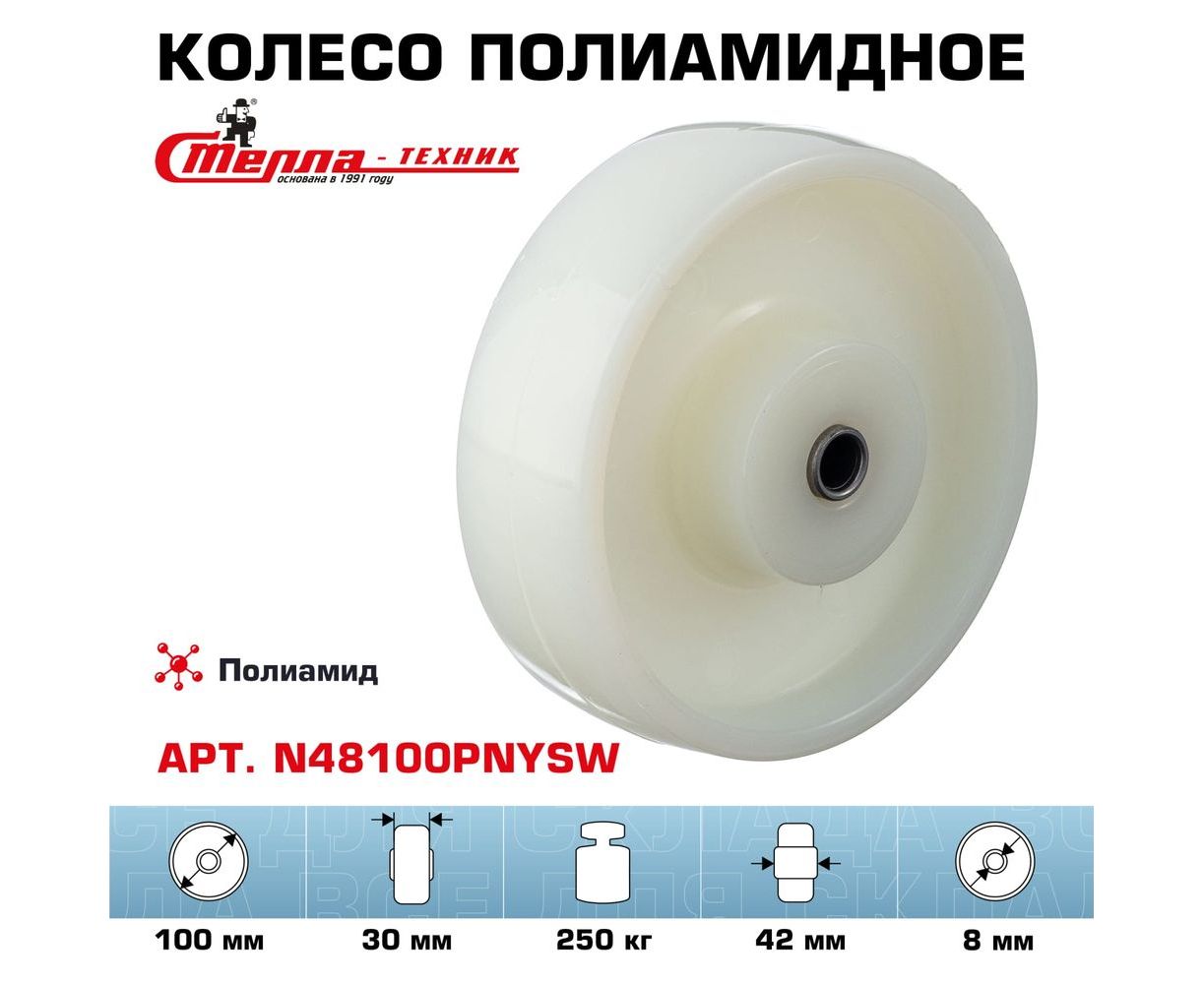 Колесо под ось (100 мм; подшипник скольжения; грузоподъемность 250 кг; полиамид) СТЕЛЛА-ТЕХНИК N48100PNYSW