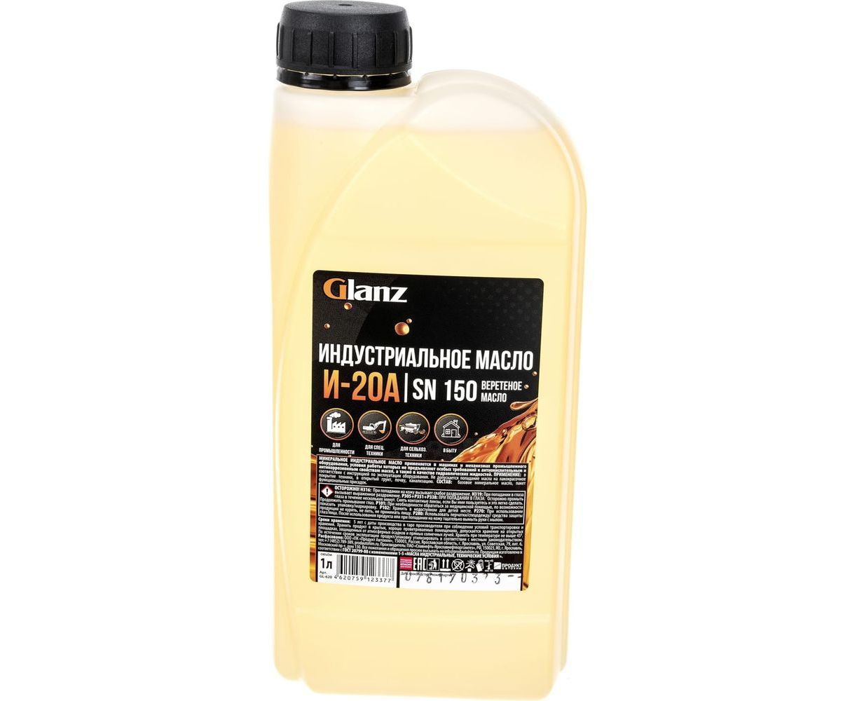 Масло индустриальное И-20А 1 л Glanz GL-620 применяется в машинах и механизмах промышленного оборудования условия работы которых не предъявляют особых требований к антиокислительным и антикоррозионным свойствам масел, а так же в качестве гидравлической жидкости.