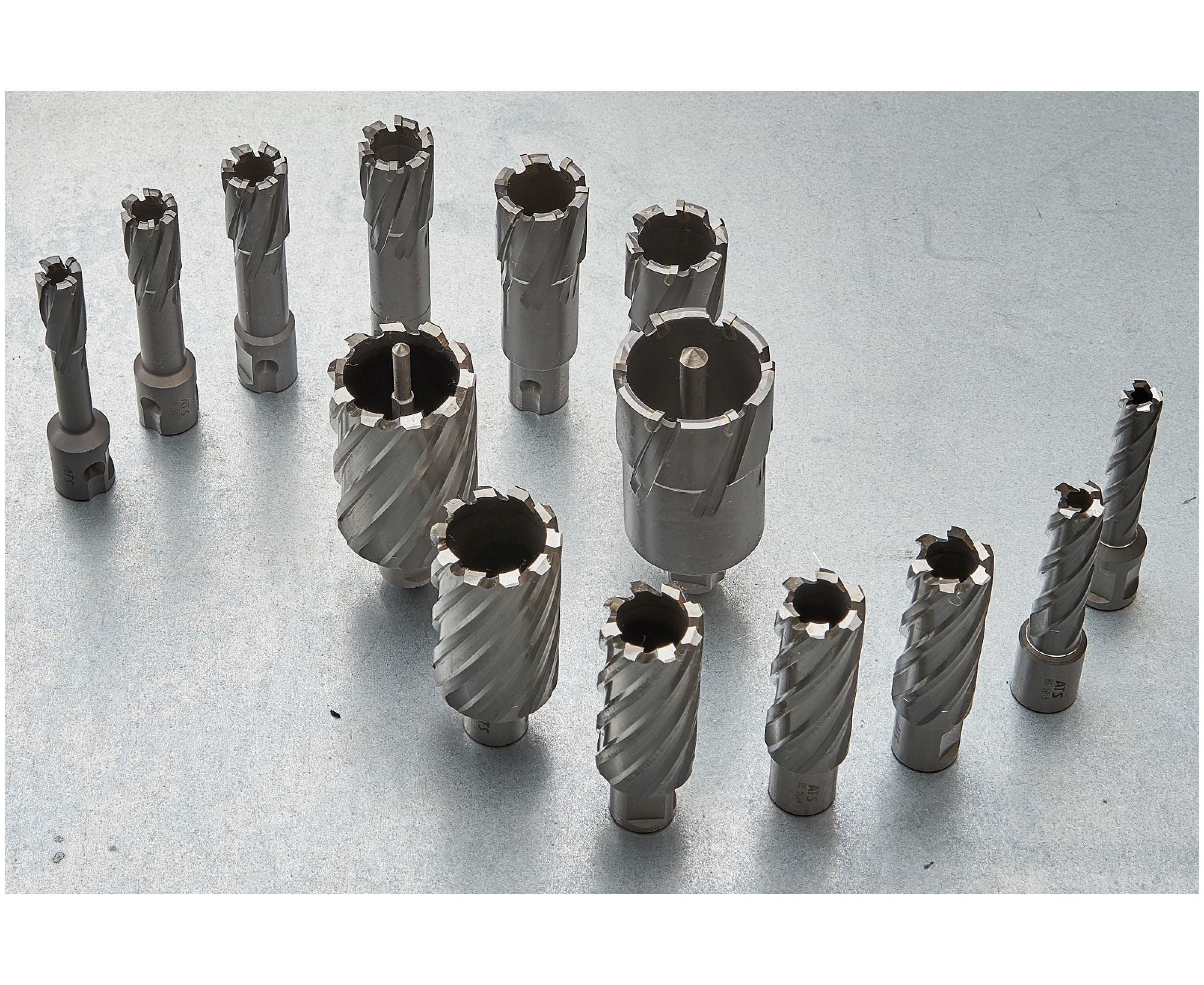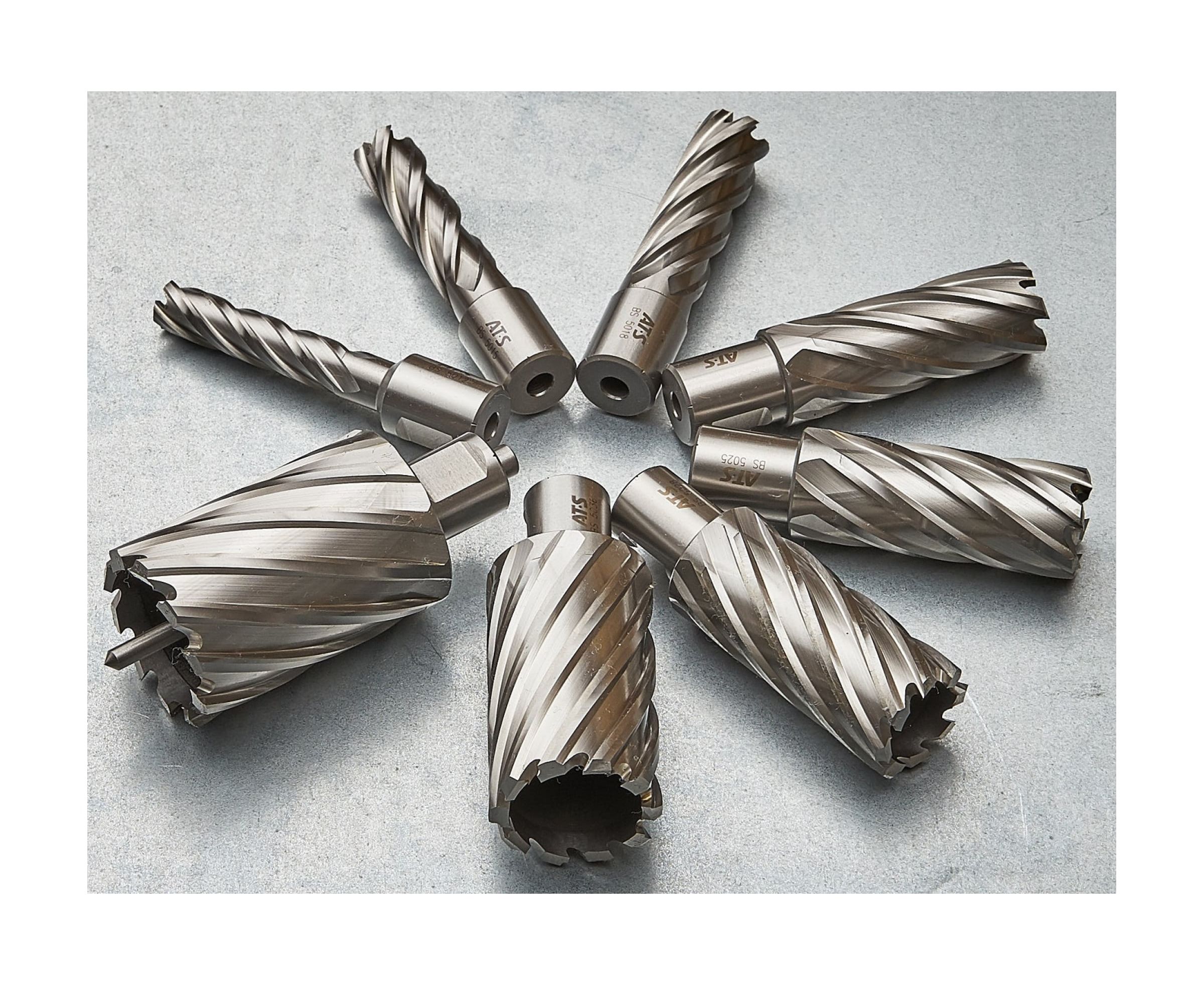 Корончатые сверла AT-S BS5038 из быстрорежущей стали HSS, длина рабочей части 50 мм, хвостовик Weldon 19. Диаметр от 12 мм. Изготавливаются из высокопрочной порошковой стали. Высокая производительность, безупречный рез. Прекрасно подойдут для сверления большинства металлов и их сплавов, за исключением сверхпрочных сталей и сплавов. Устанавливаются на магнитные станки с держателем Weldon 19. Для сверления необходимо использовать центрирующий штифт (пилот, направляющая) размер 6.34х103 мм. В комплект поставки не входит и приобретается отдельно.