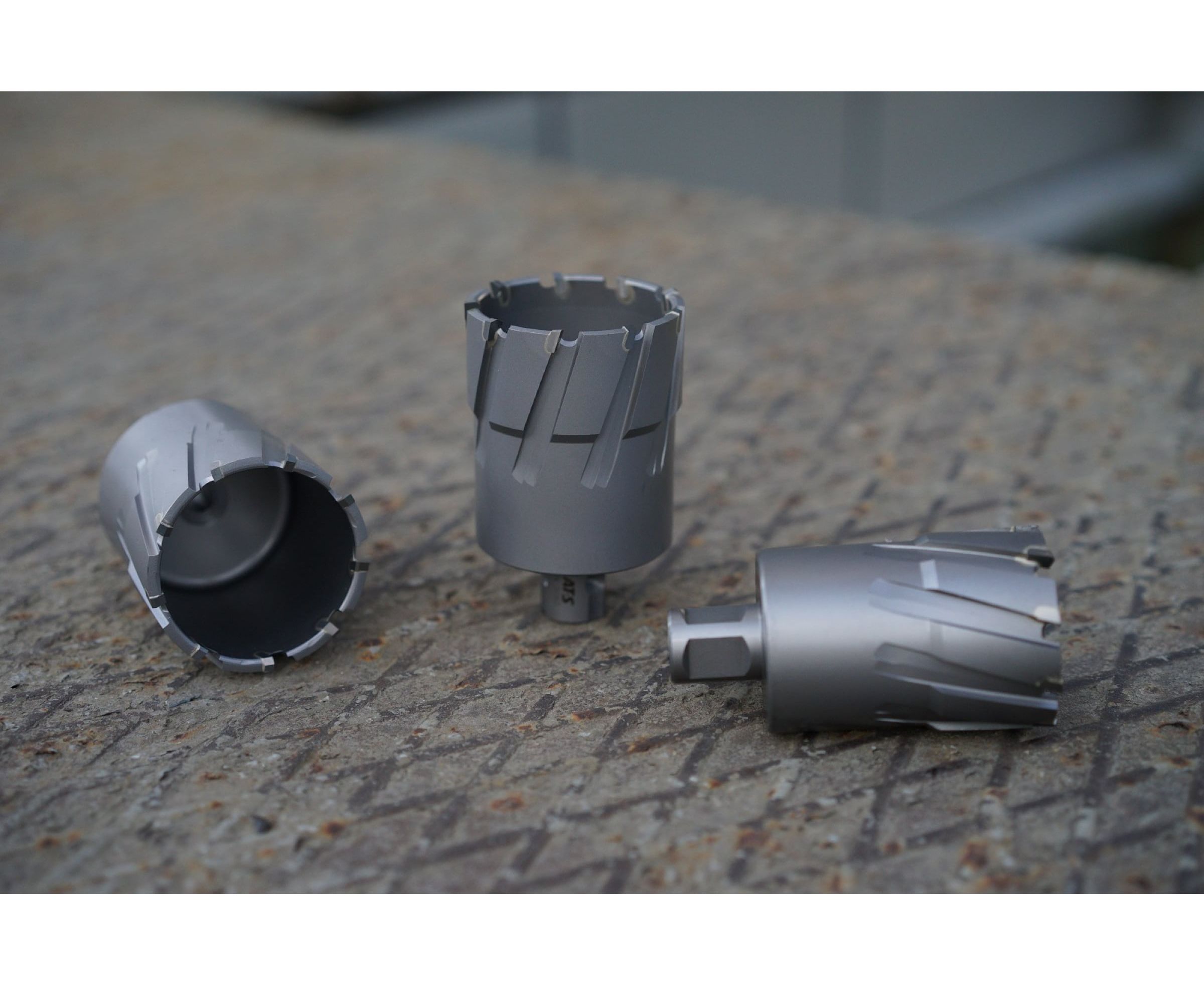 Сверло корончатое оснащено напайками из твердого сплава TCT. Обладает высокой износостойкостью и подойдет для сверления сталей, сверхпрочных сталей и сплавов, нержавейки, а также рельсов.