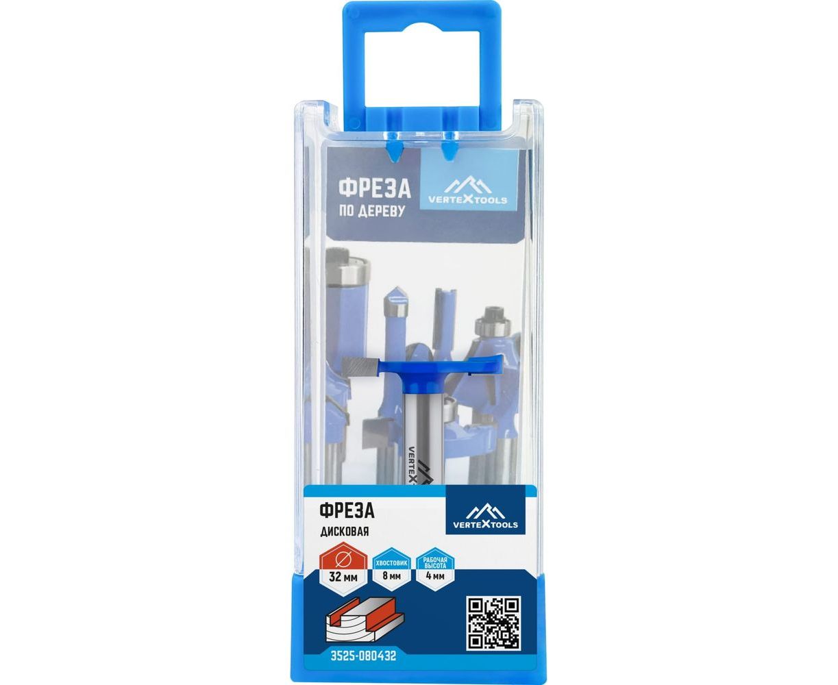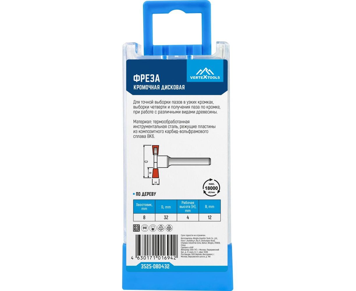Фреза кромочная дисковая хв-к 8 мм, d-32 мм, h-4 мм, b-10.7 мм, l-38 мм vertextools 3525-080432