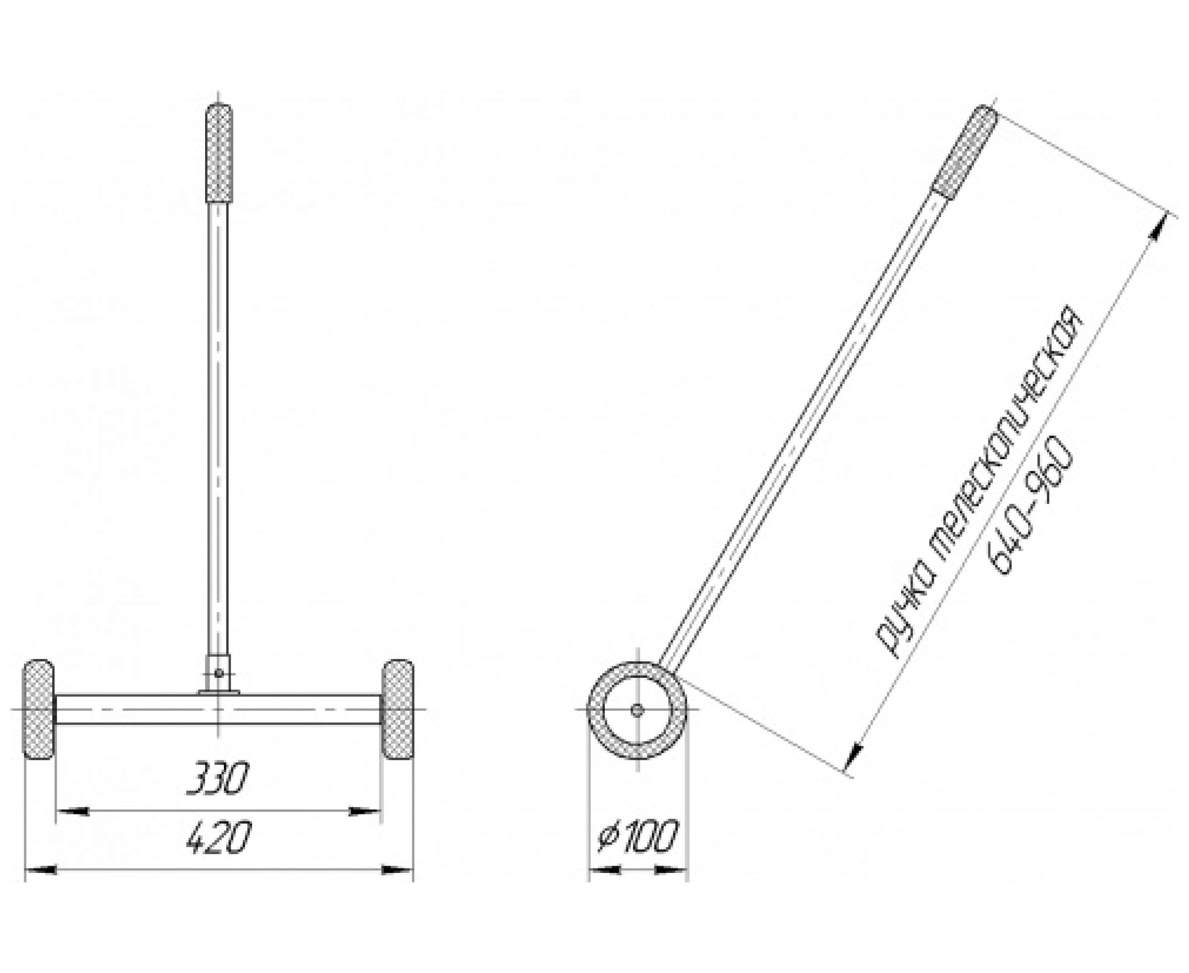 Магнитный сборщик на колесах 330 мм Проф-магнит Подборщик330-С100