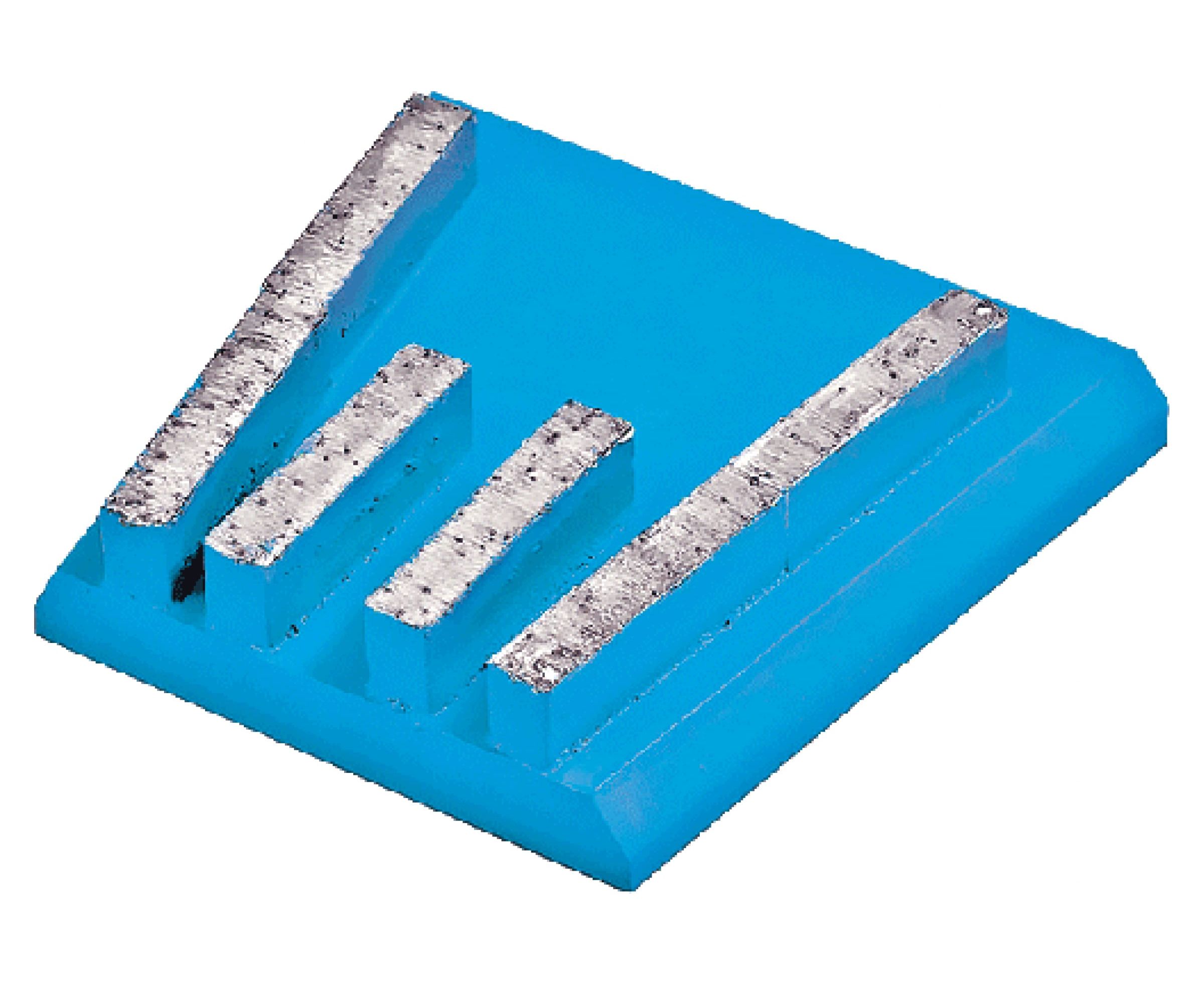 Франкфурт GFB 3 Адель КК09815 предназначен для мозаичных шлифовальных машин. Применяется для второго этапа лощения бетона всех марок. Обеспечивает гладкий пол с небольшой шероховатостью. Цвет – голубой. Размер сегментов – 40х8х9 мм. Зернистость – 80/60 мкм или 200 грит. Ресурс – 1500 кв/м при снятии 1 мм обрабатываемой поверхности. Глубина царапин – 0.05 мм.