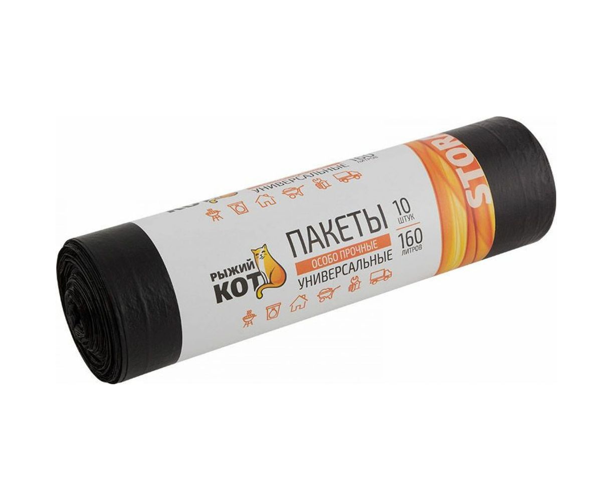 Пакеты универсальные черные особо прочные (10 шт; 160 л; 25 мкм) Рыжий кот 006977