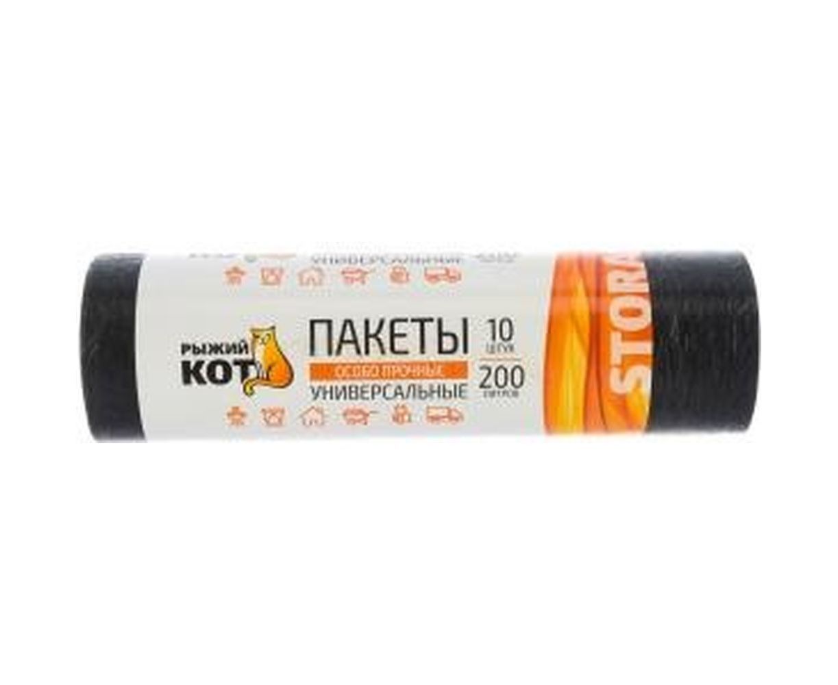Пакеты универсальные черные особо прочные (10 шт; 200 л; 30 мкм) Рыжий кот 006978