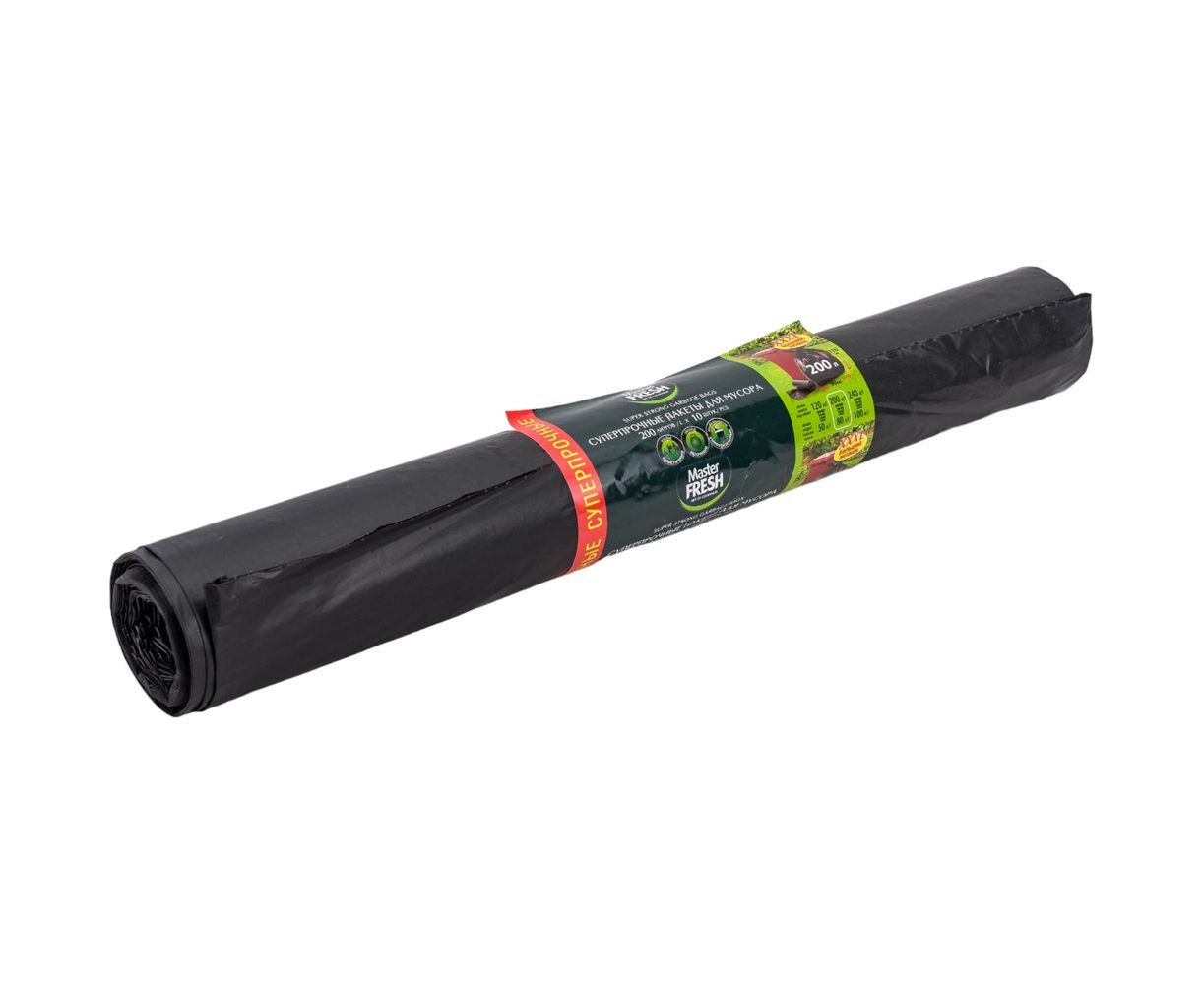 Пакеты черные суперпрочные для мусора 10 шт, 200 л, 35 мкм MASTER FRESH 218380