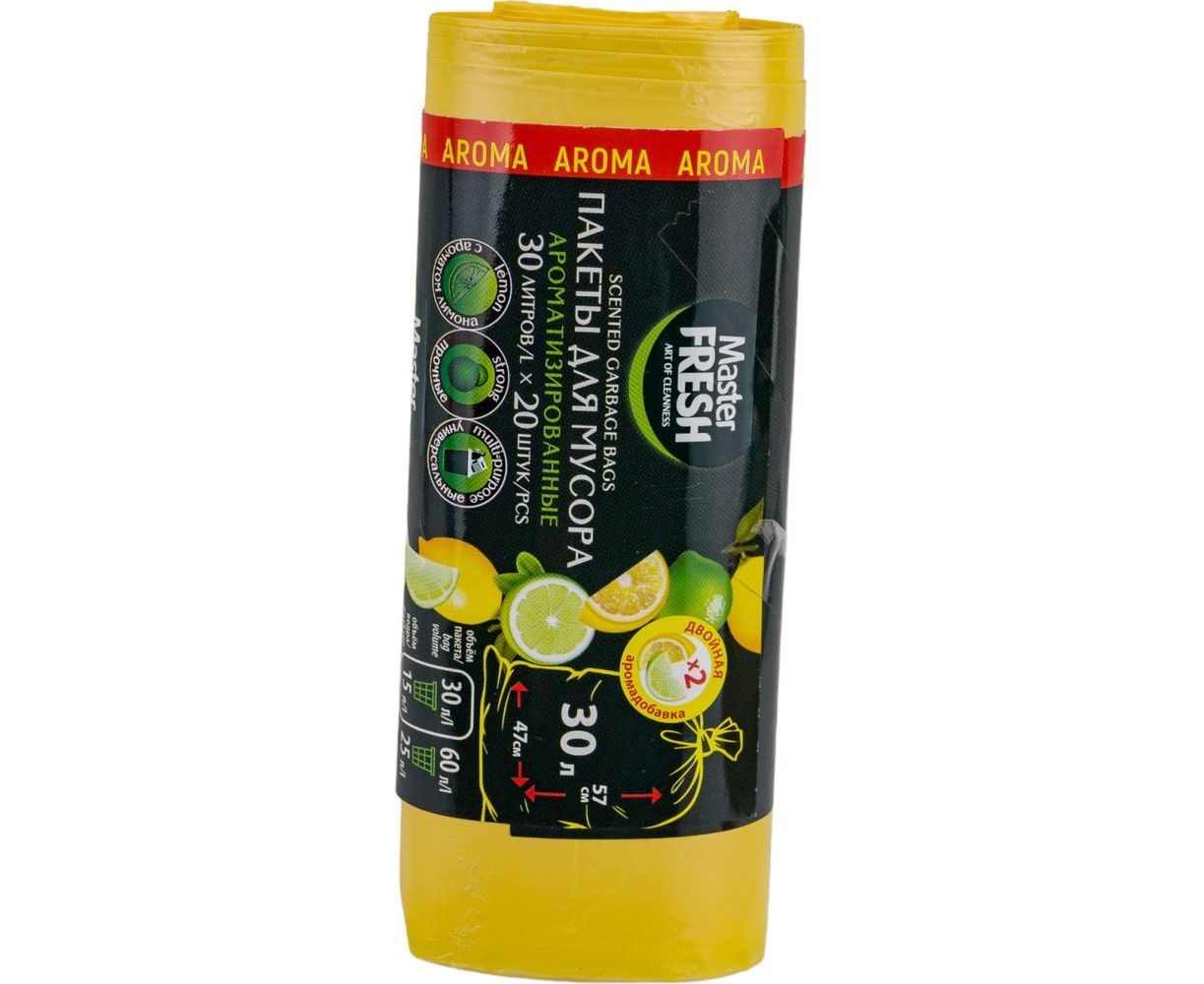 Пакеты желтые для мусора Aroma 20 шт, 30 л, 7 мкм MASTER FRESH 236519