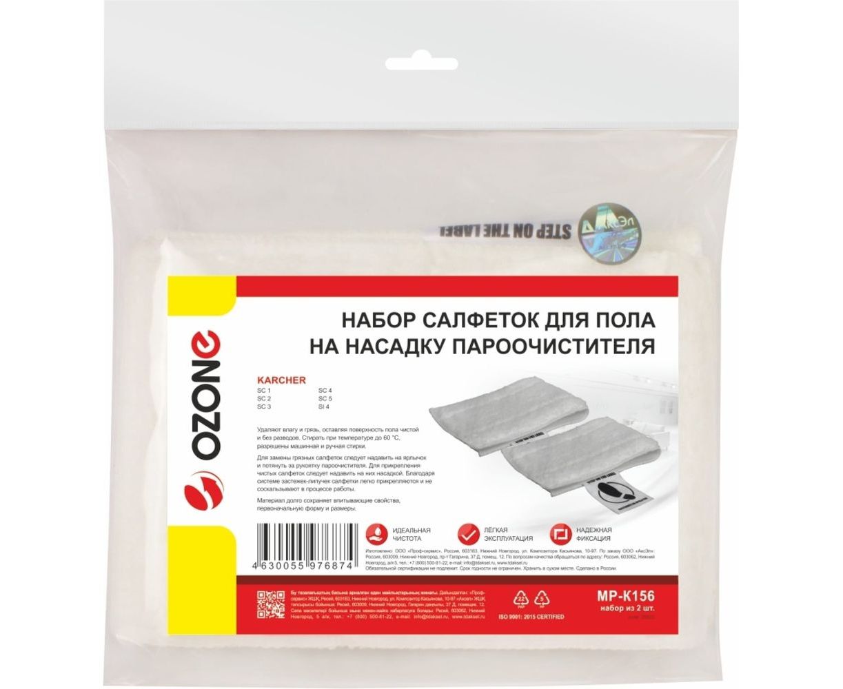 Набор салфеток для пола на насадку пароочистителя KARCHER SC 3, SC 4, SC 2, SI 4, SC 1, SC 5 2 шт OZONE MP-K156